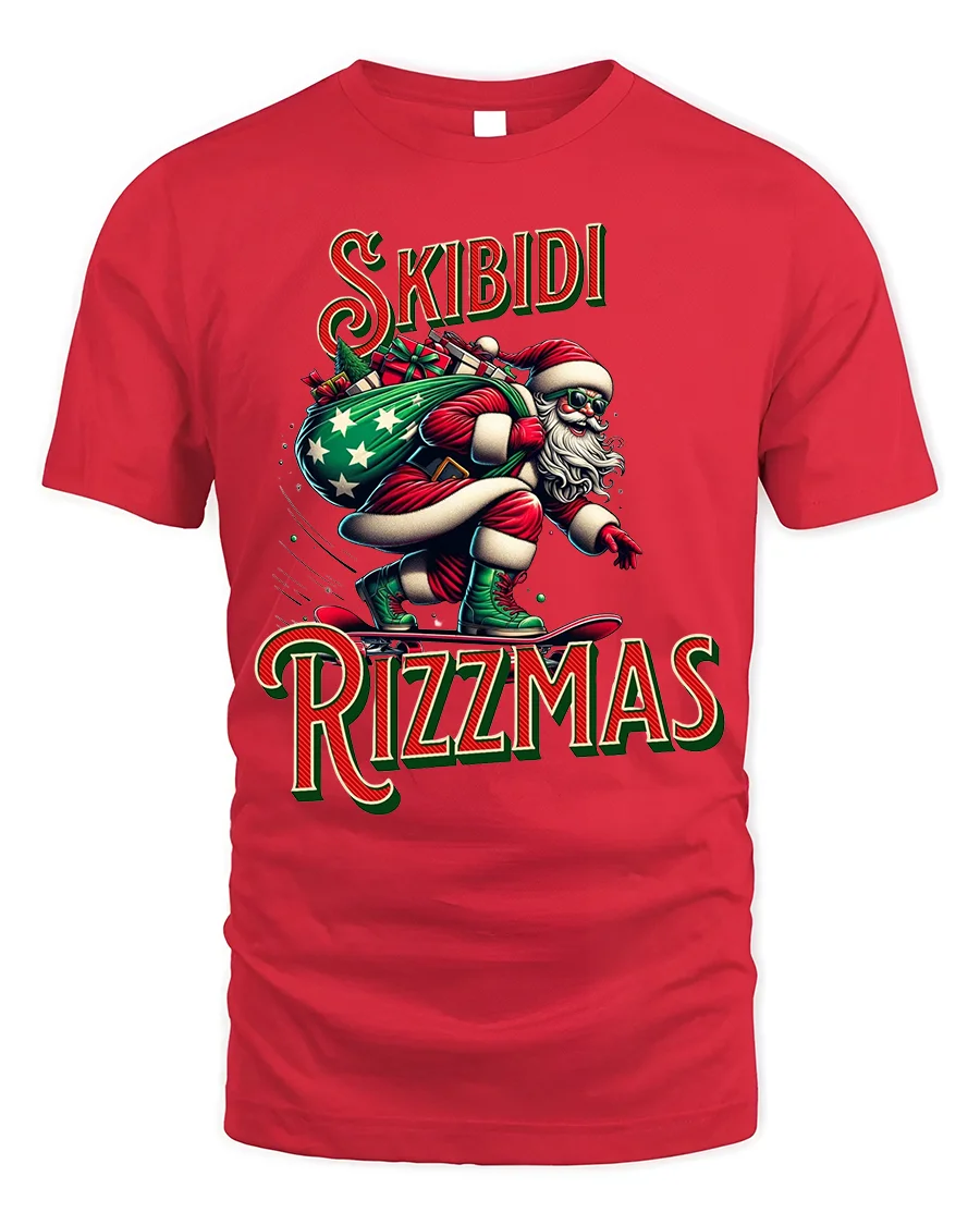 Made from high-quality material, this Skibidi Rizzmas t-shirt is soft, durable, and comfortable for everyday holiday wear. Whether you’re heading to a Christmas party, lounging at home, or looking for a fun outfit to wear while exchanging gifts, this shirt is designed to bring laughs and festive energy. The eye-catching graphic blends holiday tradition with internet-inspired humor, ensuring you’ll stand out all season long.