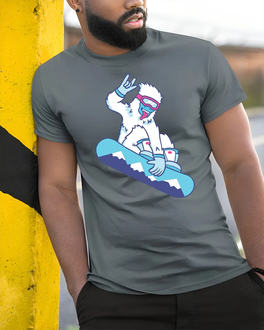 Inspired by winter excitement and extreme sport culture, this graphic tee expresses confidence and fun spirit while celebrating outdoor adventure lifestyle. The snowboarding yeti design brings humor and creativity together, making it a memorable addition to collections that highlight bold personality and seasonal fashion.
