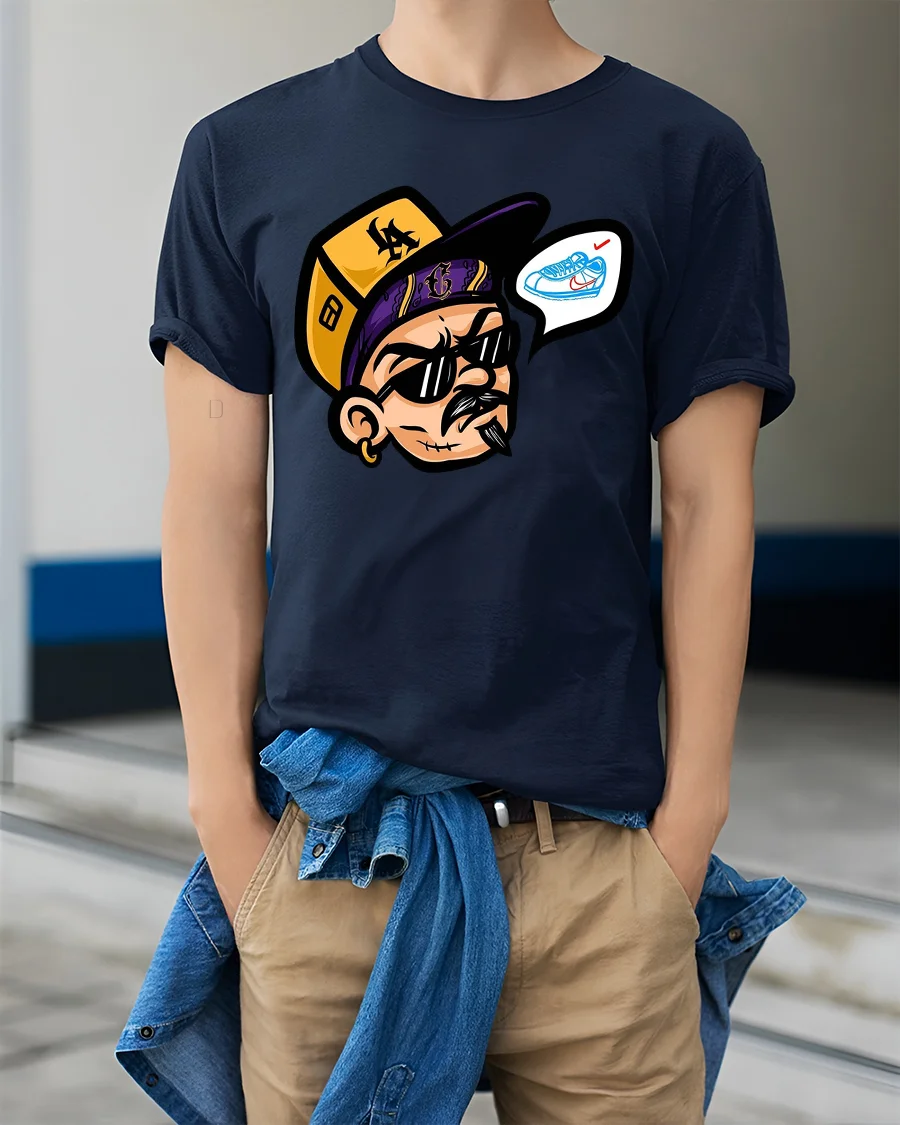 This sneaker culture graphic tee offers a creative way to express appreciation for urban lifestyle and trendy fashion aesthetics. The stylish character artwork captures the spirit of individuality and modern expression through a fun and memorable design. A unique addition to casual wardrobes, this streetwear inspired tshirt delivers personality, creativity, and bold visual charm.