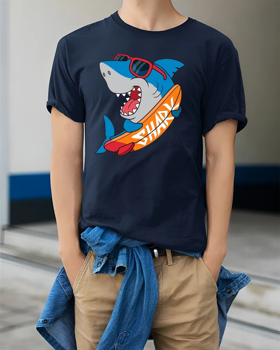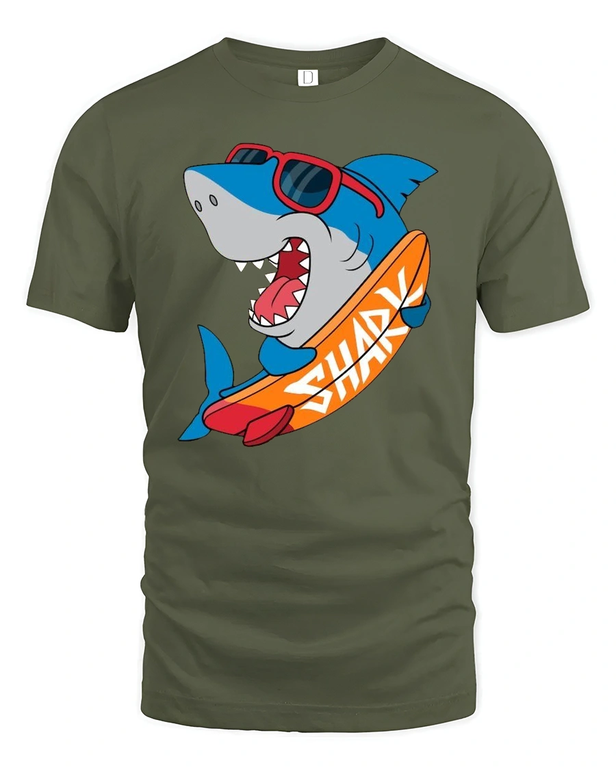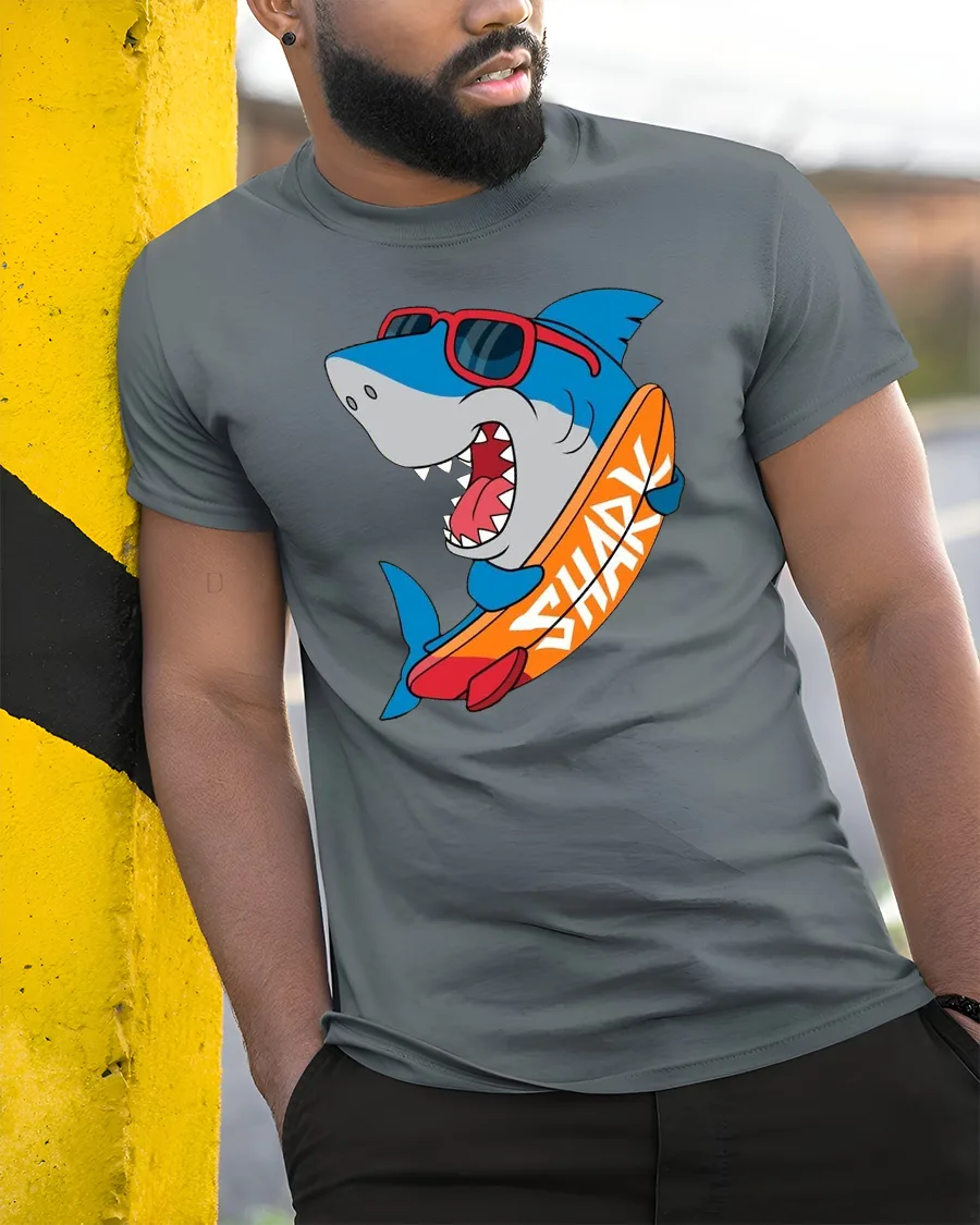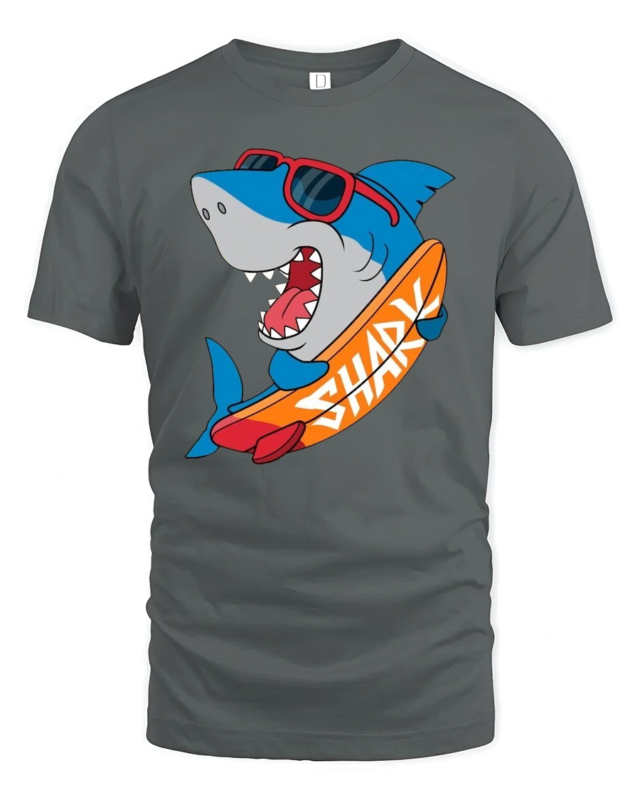This tshirt provides a comfortable feel ideal for beach trips, vacation moments, relaxed daily wear, or casual social gatherings. The surfing shark artwork symbolizes confidence, humor, and appreciation for ocean themed creativity. Its versatile design pairs easily with modern outfits, helping create a confident appearance that reflects energetic coastal lifestyle inspiration.
