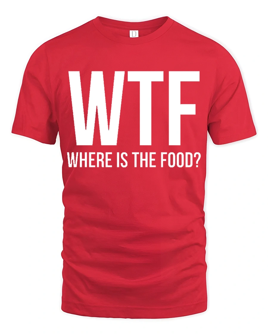 Funny WTF Where Is The Food Hungry Humor Graphic T Shirt - red t-shirt on white background