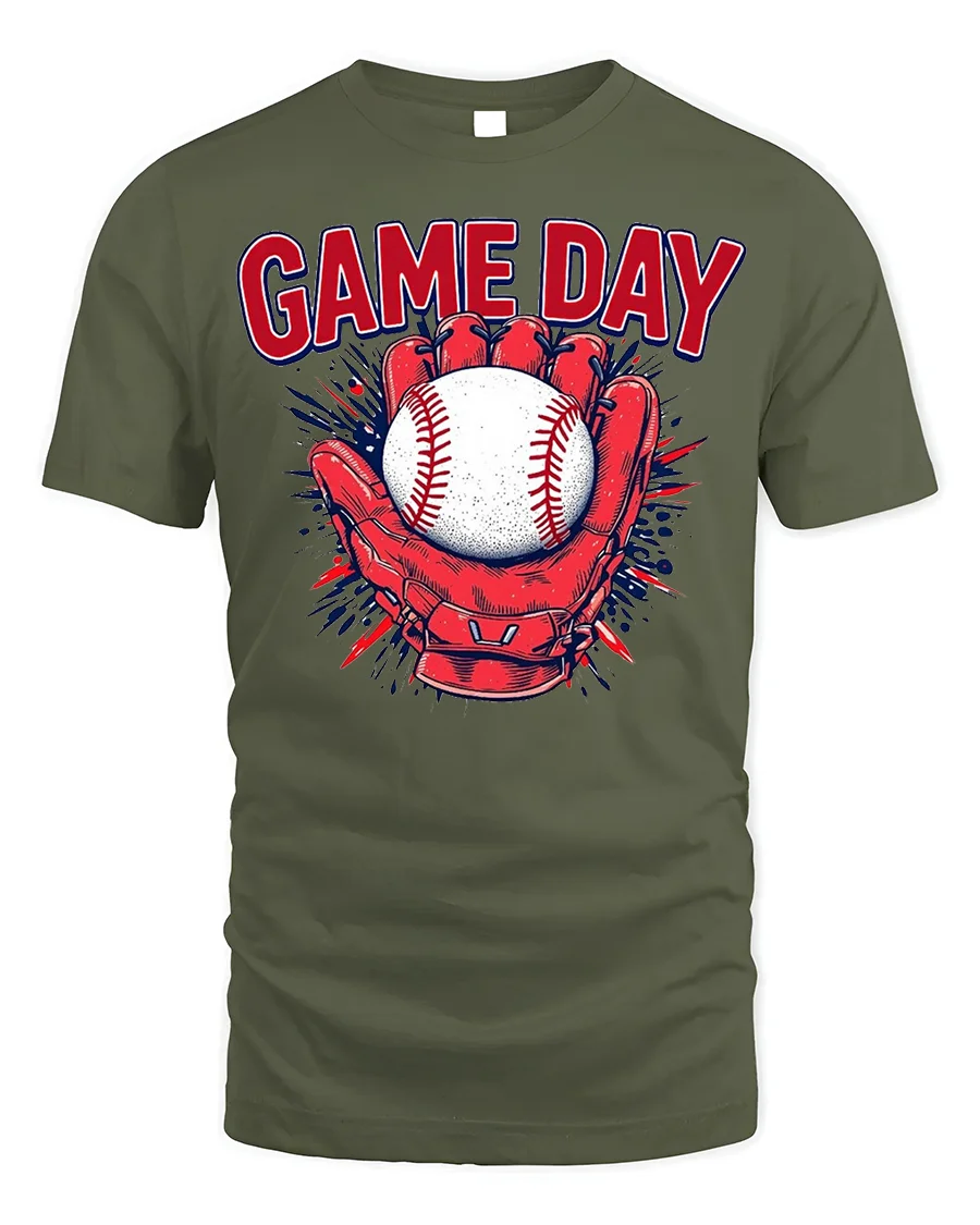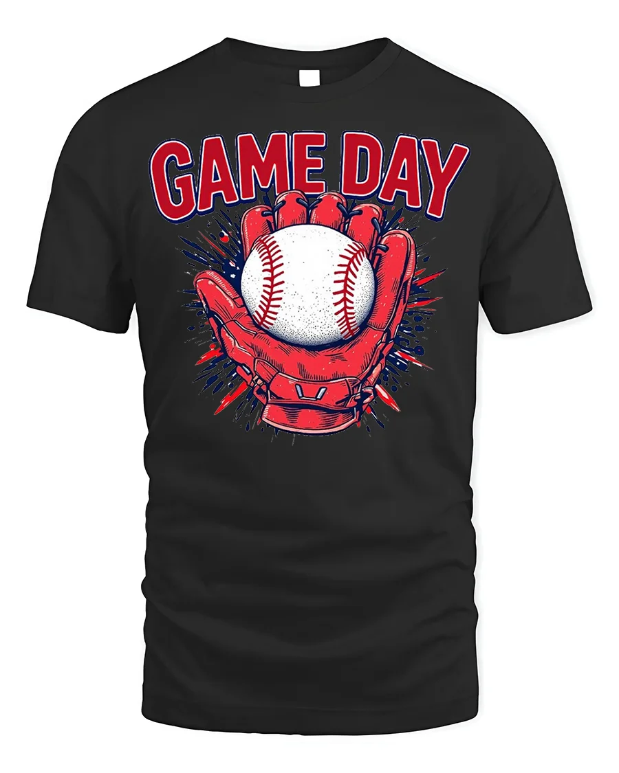 Step onto the field or into the stands in style with the Game Day Baseball Glove and Ball Graphic T-Shirt. This bold design showcases a red baseball glove holding a classic white ball with the words “Game Day” proudly displayed above, making it the perfect shirt for fans and players alike. Whether you’re ready to cheer, play, or celebrate America’s favorite pastime, this tee brings the spirit of the game to life.