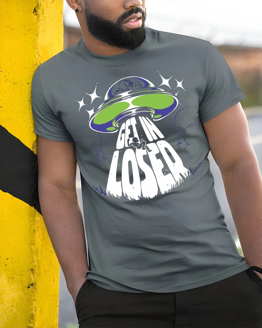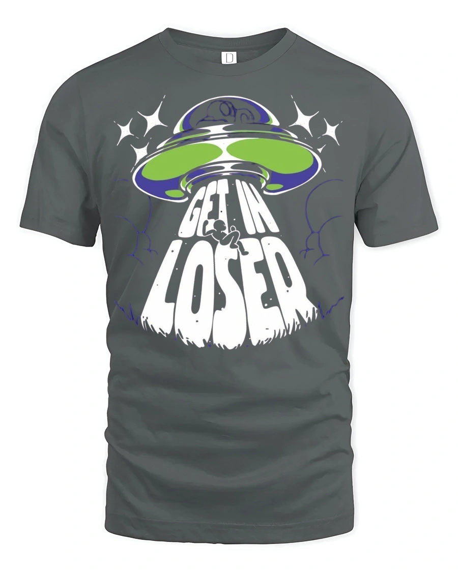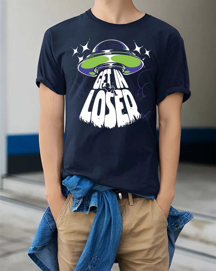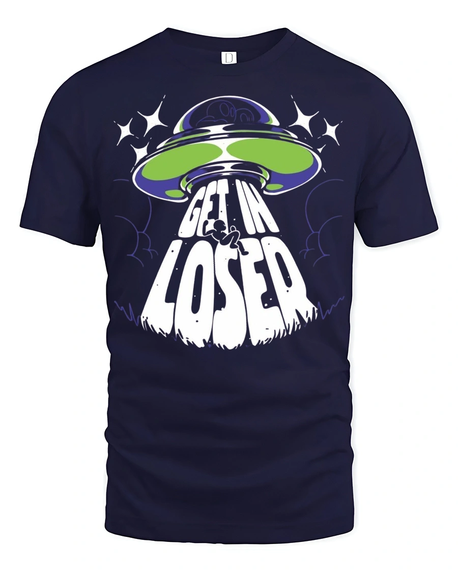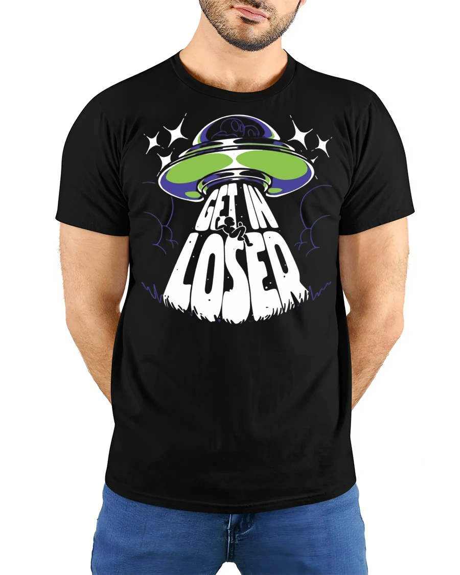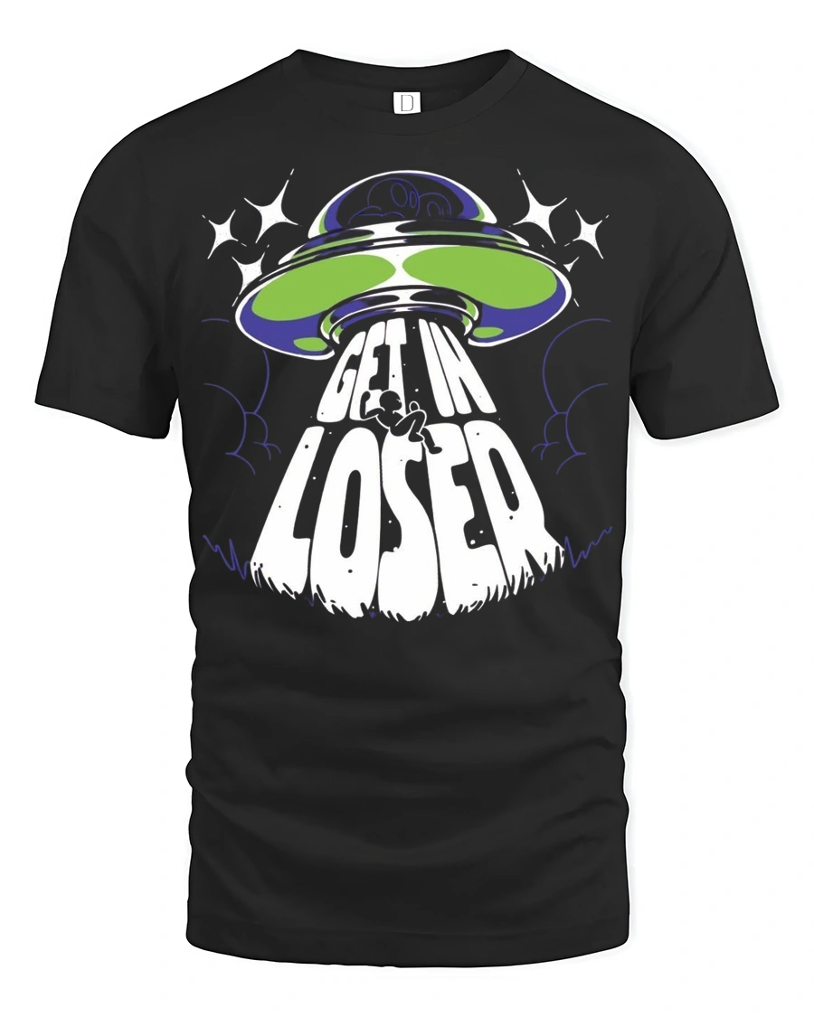 Get In Loser Alien UFO Graphic T Shirt Funny Space Tee