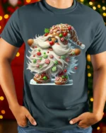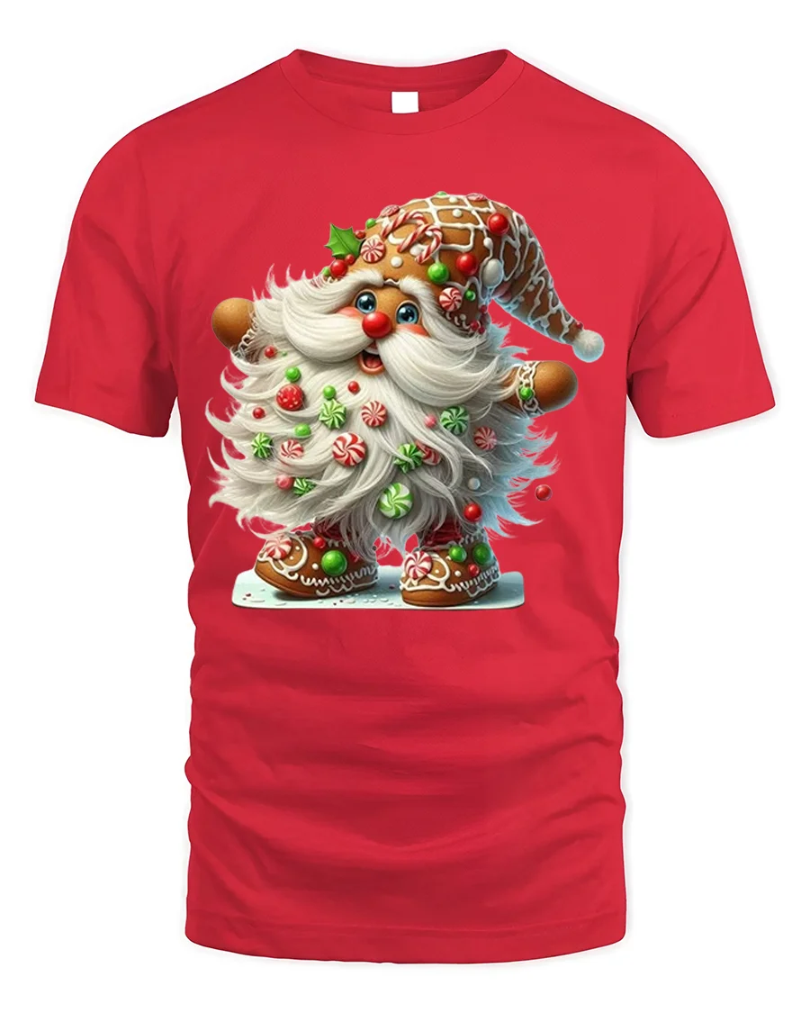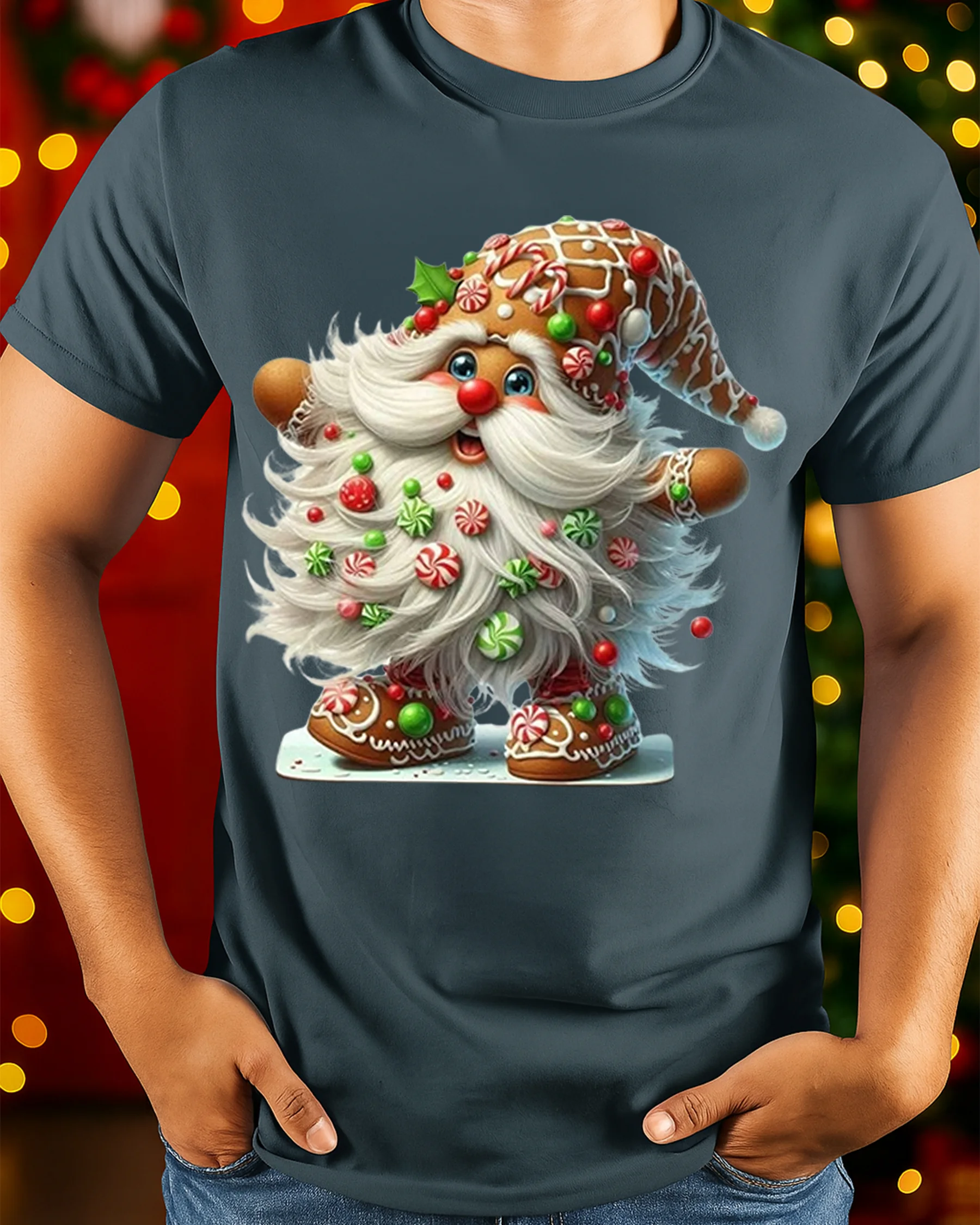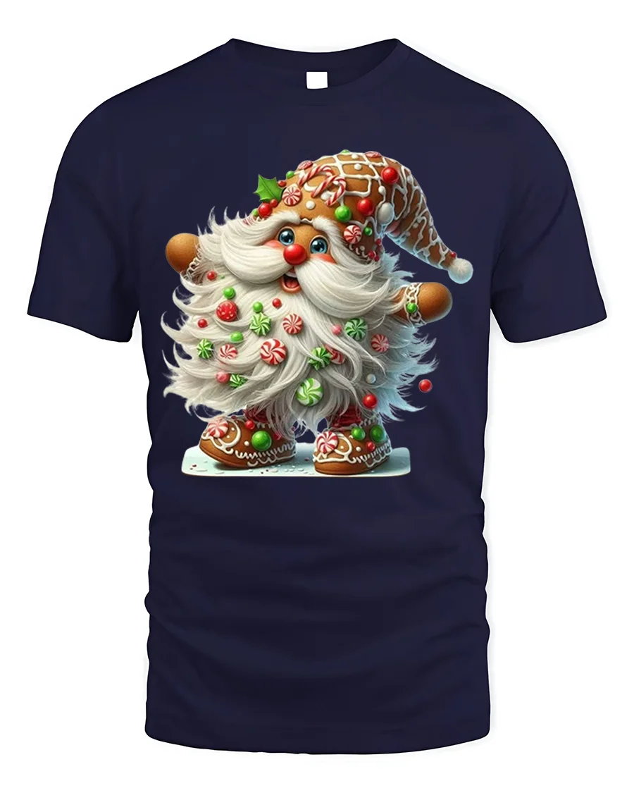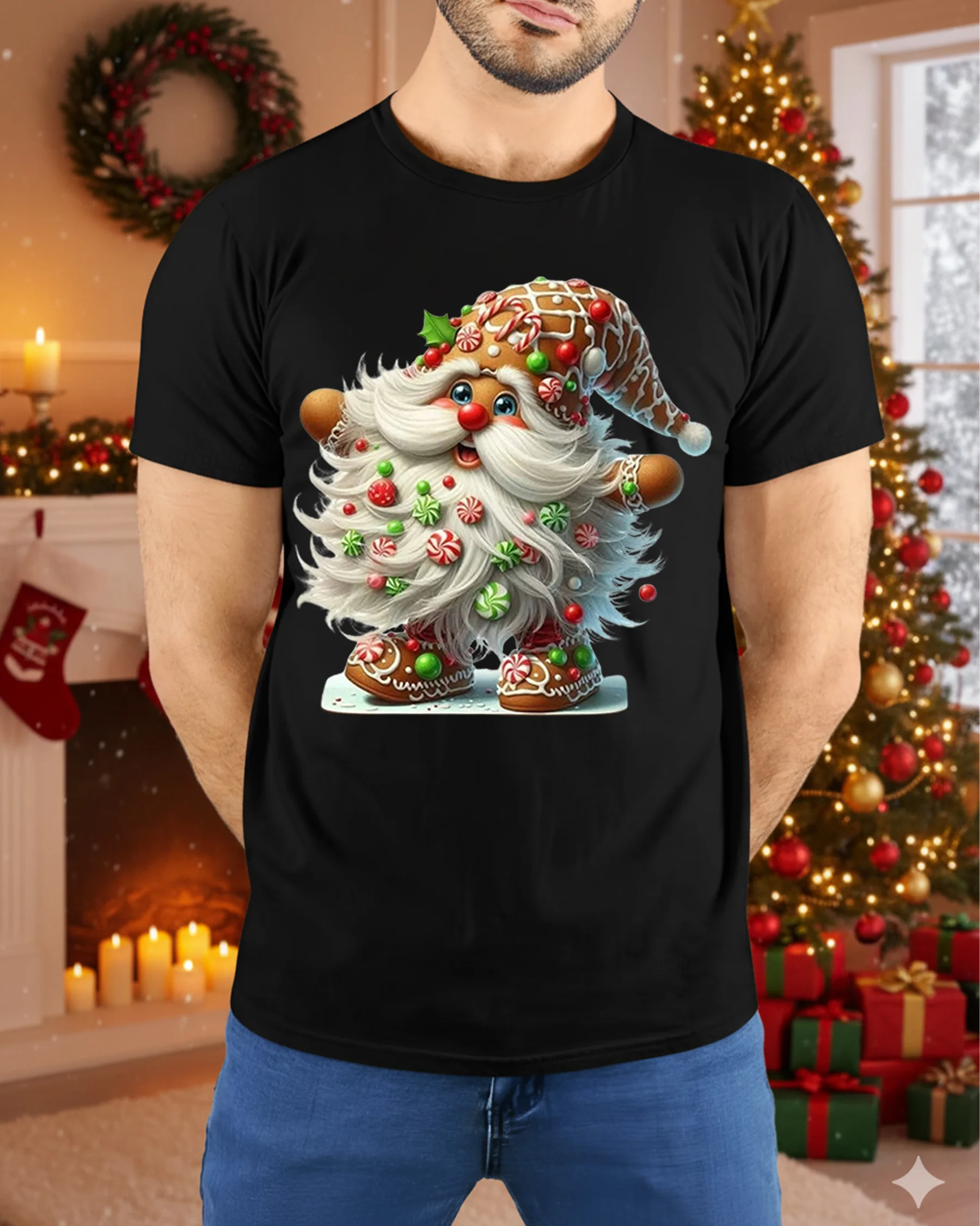 Crafted from soft, high-quality cotton, this t-shirt delivers comfort and festive style all season long. The vibrant print captures every delightful detail—from peppermint candies and frosting accents to Santa’s cheerful gingerbread smile. It’s ideal for Christmas parties, family gatherings, or simply relaxing by the fire with your favorite treats.