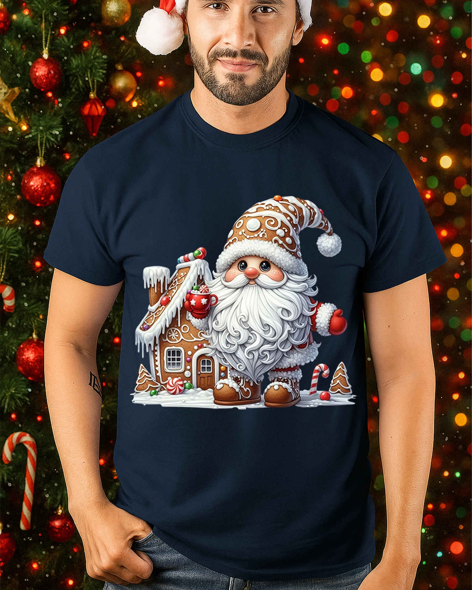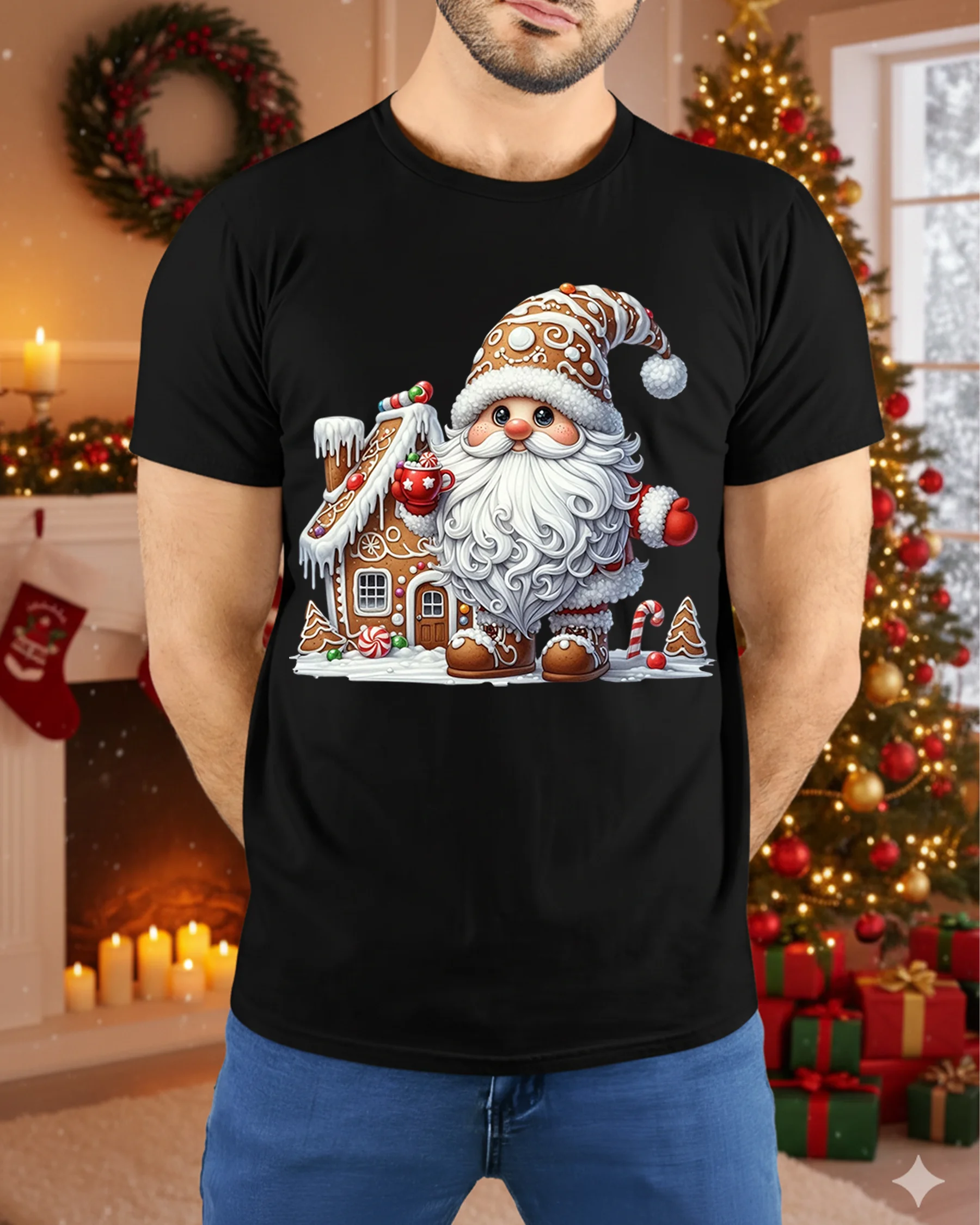 This Gingerbread Santa T-Shirt Cute Christmas Cookie House Tee also makes a delightful gift for bakers, candy lovers, and anyone with a sweet spot for Christmas magic. Pair it with jeans, leggings, or festive pajamas for a warm and cheerful holiday look. Spread smiles and sugar-coated joy this season with this adorable gingerbread Santa t-shirt.