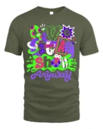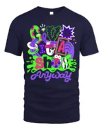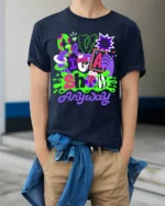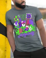 This t-shirt is crafted from soft and breathable fabric, providing a comfortable fit for all-day wear. The high-quality print preserves every vivid detail—from the bright greens and purples to the layered cartoon-style elements—ensuring long-lasting color and clarity. Whether you’re heading out with friends, exploring the city, or adding personality to your daily outfit, this tee delivers both comfort and character.
