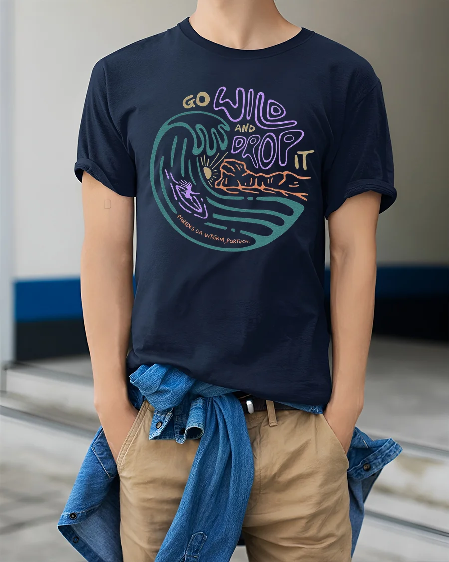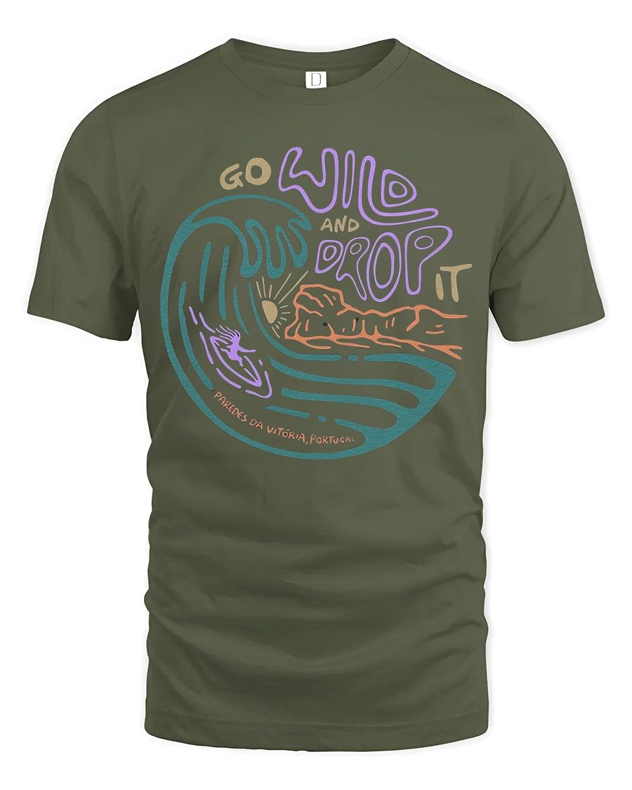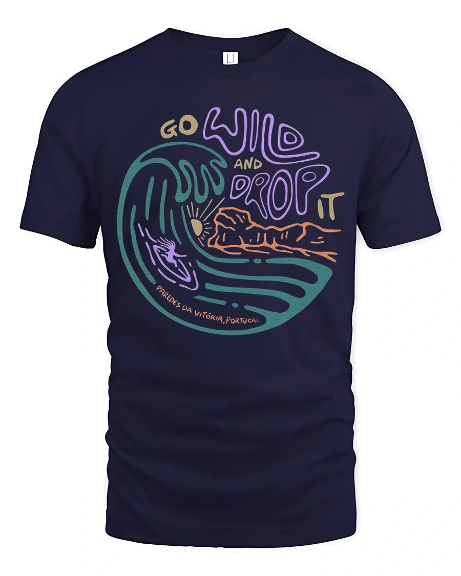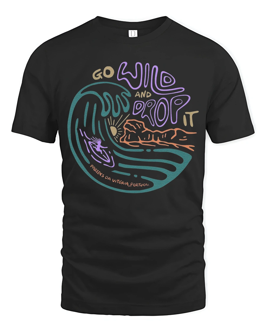 Feel the rhythm of the ocean with the Go Wild And Drop It Surf Graphic Tee Retro Ocean Wave Tshirt featuring a vibrant wave illustration and expressive typography.
