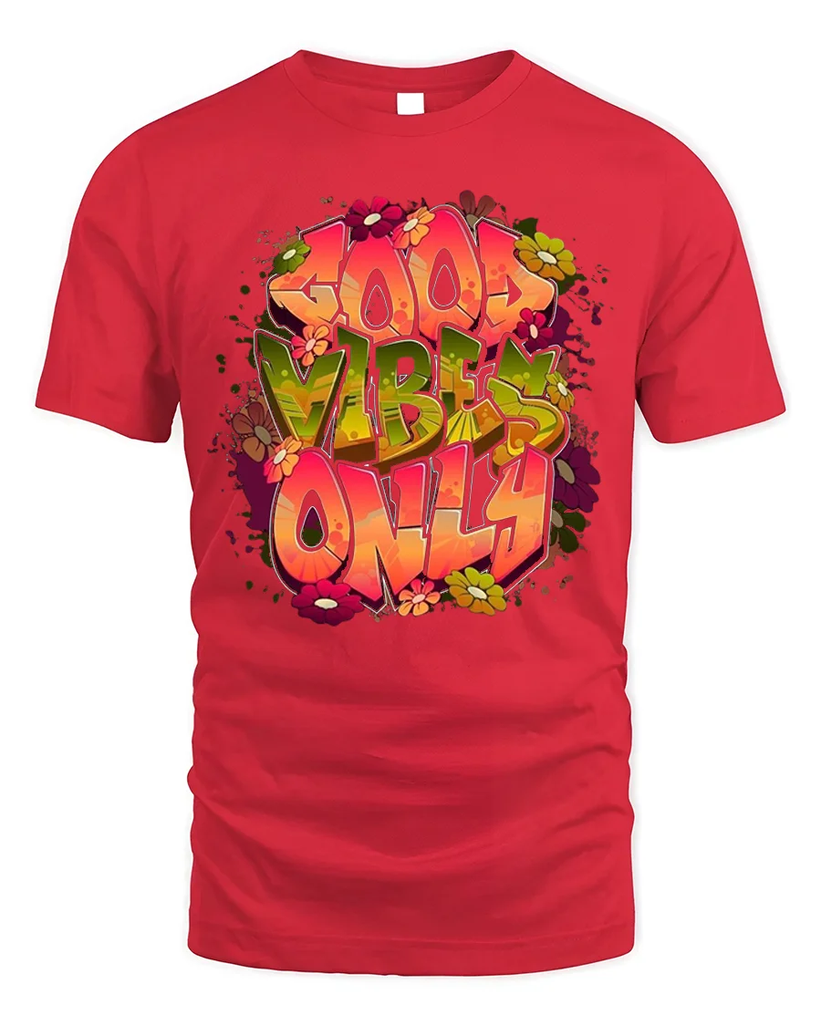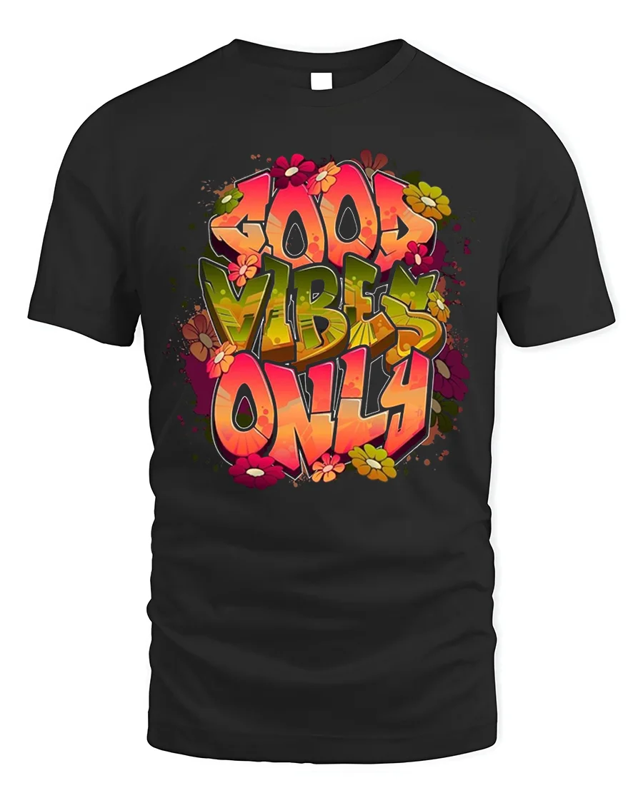 Good Vibes Only Graffiti Flower Art Positive Graphic T-Shirt brings vibrant color, uplifting energy, and bold street-art style to your everyday outfits. Featuring graffiti-inspired lettering surrounded by bright flowers, this design blends positivity with artistic flair. Its warm gradient tones and dynamic shapes create a cheerful and expressive look perfect for those who love spreading good energy wherever they go.
