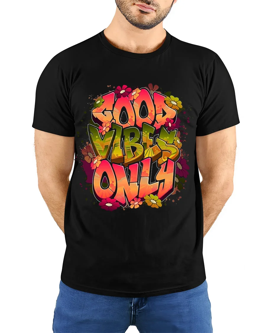 The Good Vibes Only Graffiti Flower Art Positive Graphic T-Shirt also makes a thoughtful gift for anyone who loves inspirational designs, colorful streetwear, or positive lifestyle messages. Ideal for festivals, casual outings, creative spaces, or everyday wear, it adds a burst of happiness and personality to any look. Add this uplifting and vibrant t-shirt to your collection and let your outfit radiate nothing but good vibes.