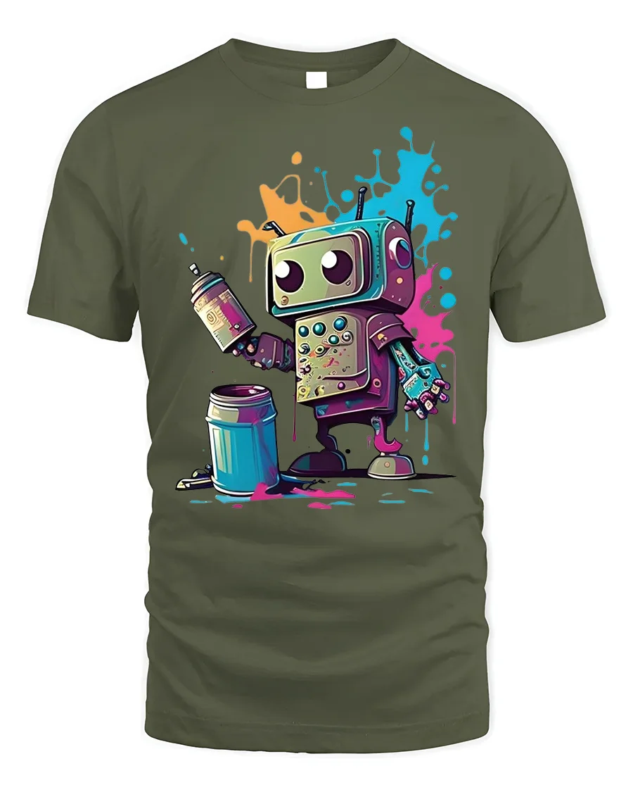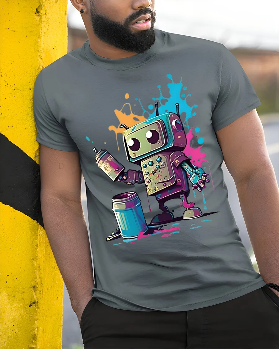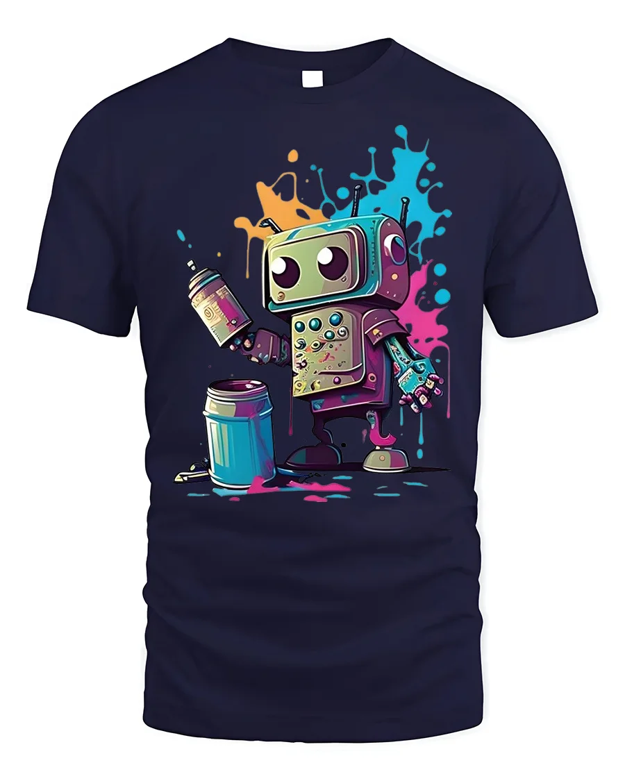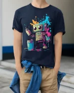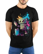 Made from soft, breathable fabric, this graphic t-shirt provides all-day comfort while maintaining durability through countless washes. The high-quality print ensures every splash, drip, and graffiti detail remains sharp and bright over time. Whether you’re an art lover, a fan of quirky robot characters, or someone who enjoys colorful and unique designs, this shirt adds a fun and eye-catching twist to everyday outfits.