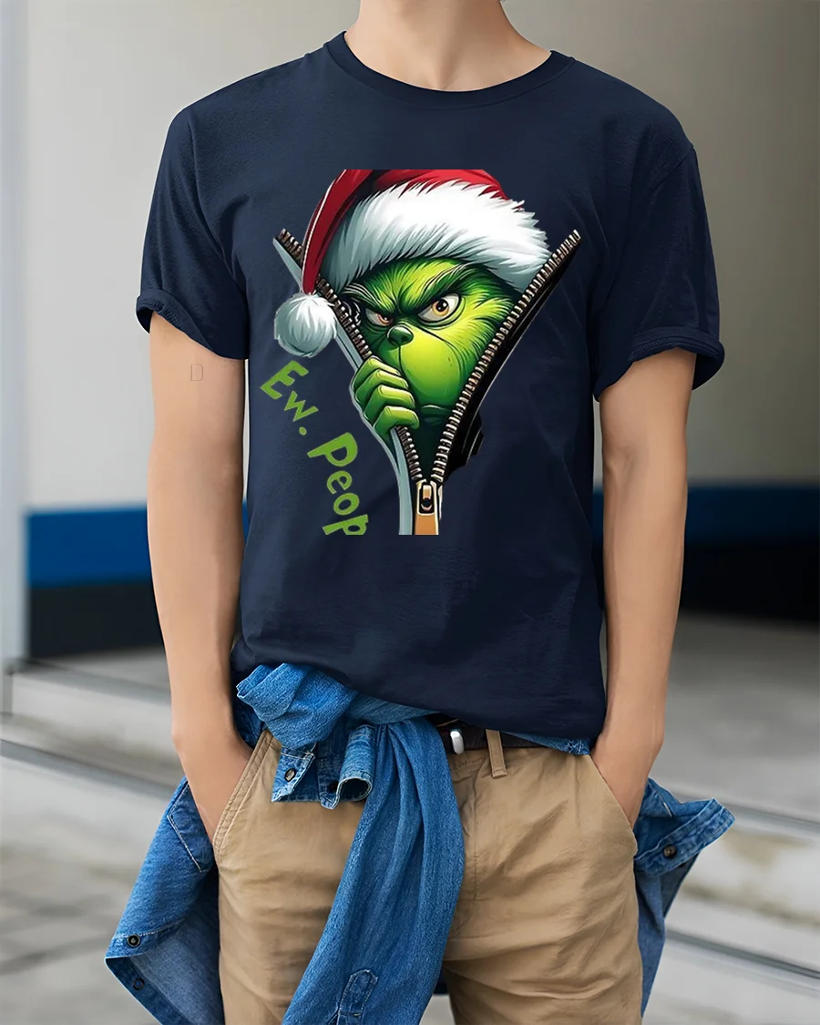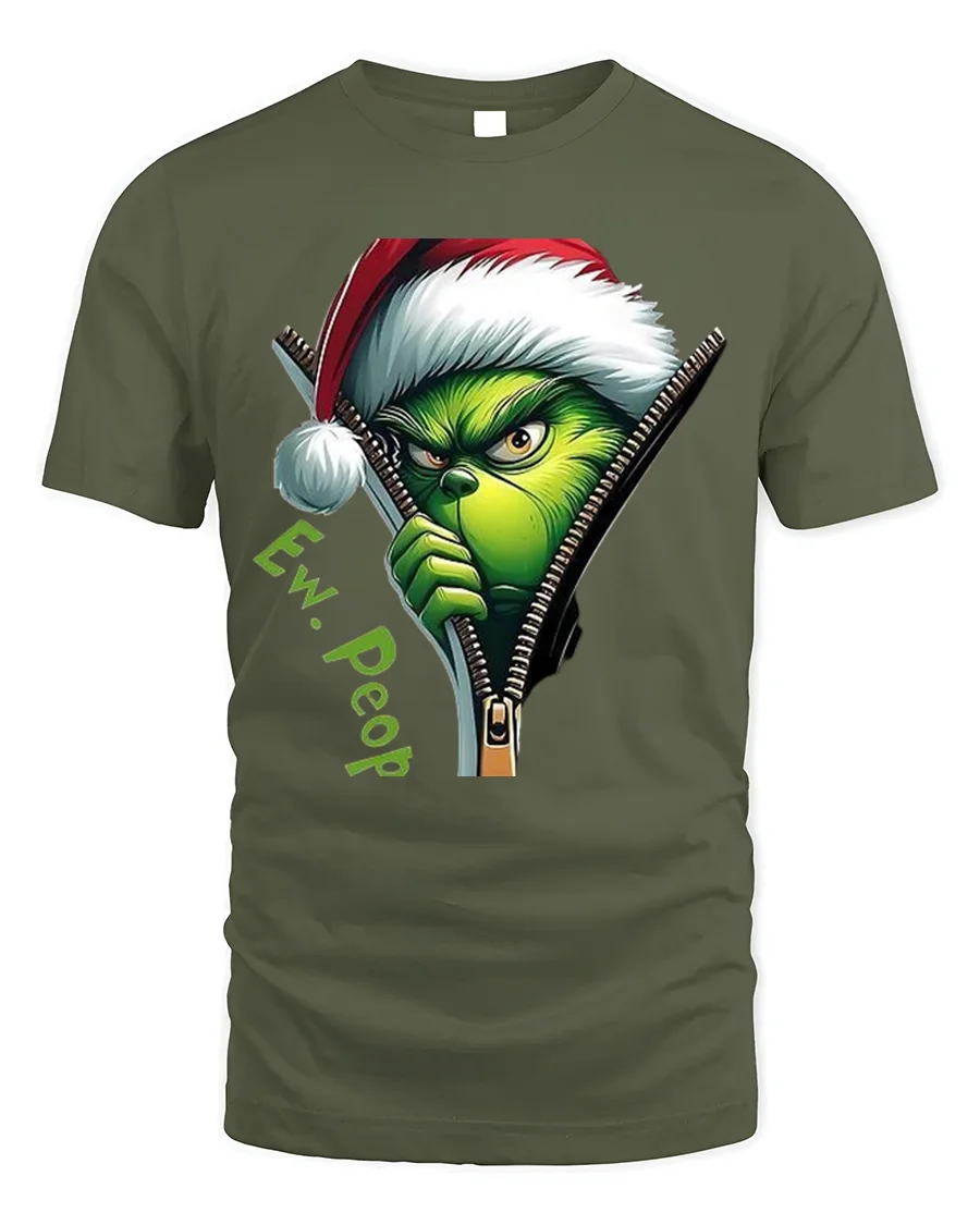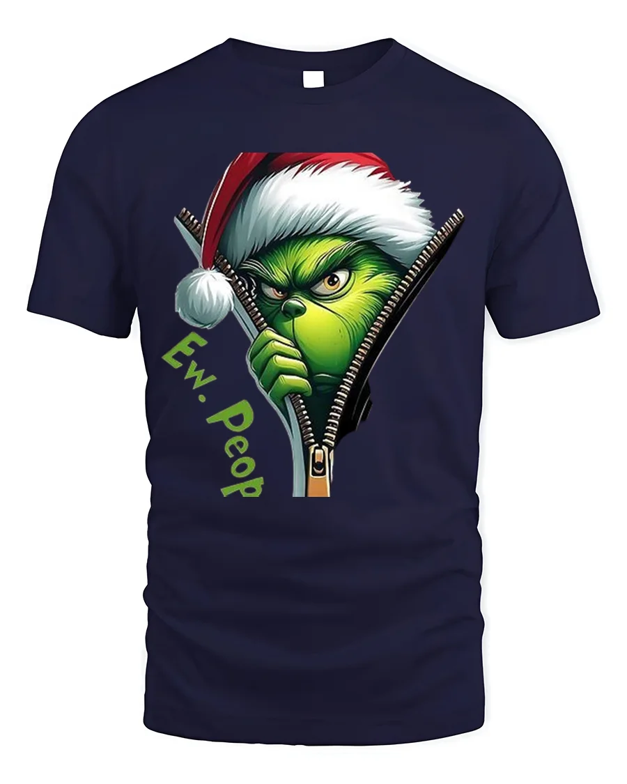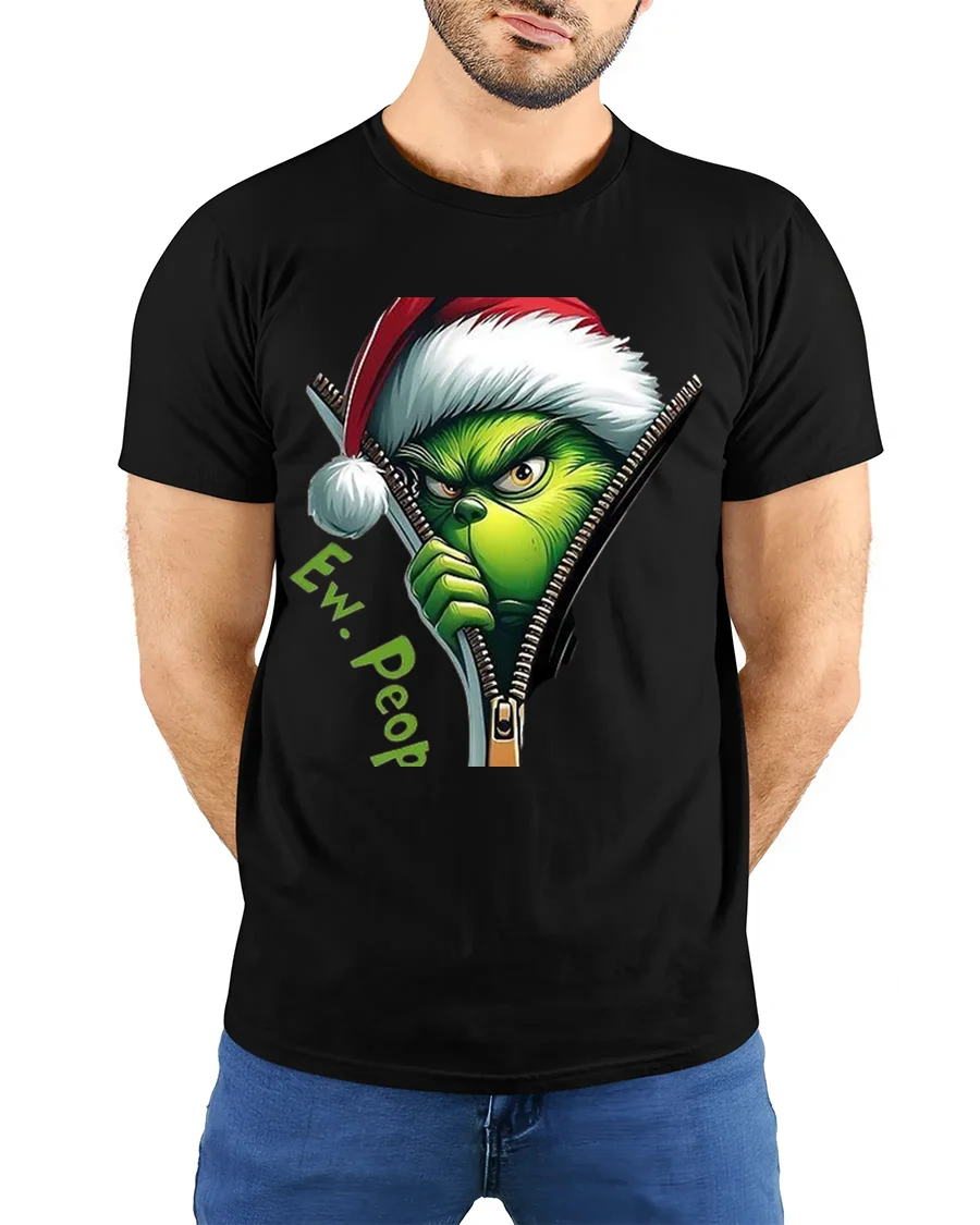 Embrace your inner holiday grump with our hilarious Grinch Ew People Christmas T-shirt! This witty tee features everyone’s favorite green character, the Grinch, peeking out from behind a zipper, with the iconic phrase “Ew. People.” prominently displayed. It’s the perfect shirt for those who love to celebrate the season with a touch of playful cynicism and a clear message for crowded holiday events. Made from soft, comfortable material, this t-shirt ensures you stay cozy while showcasing your unique holiday spirit.