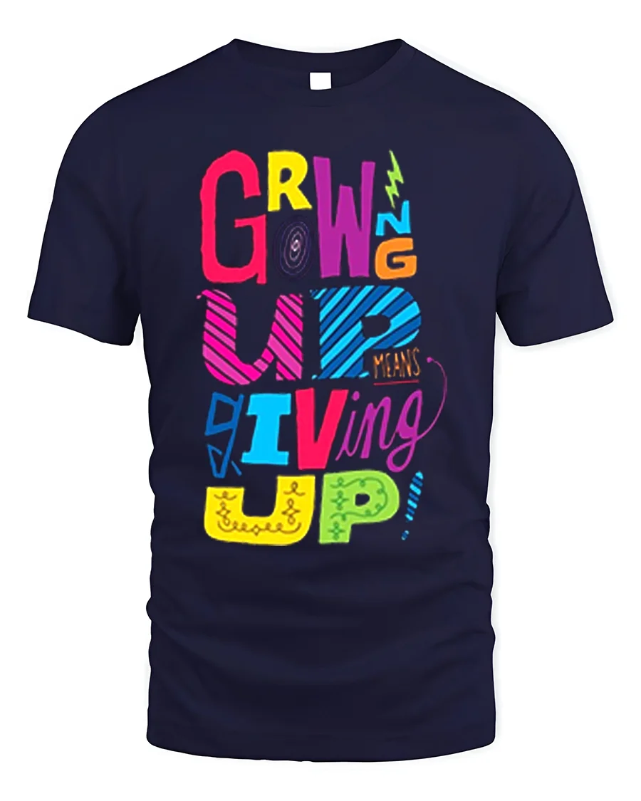 SKU: IMPD0310a4 Category: Hobbies Tags: anti-adulting, colorful print, comfortable tee, cool t-shirt, expressive t-shirt., funny t-shirt, Gen Z fashion, gift idea, Growing up means giving up, humorous graphic, life quote t-shirt, millennial humor, Novelty t-shirt, playful design, retro t-shirt, sarcastic tee, soft cotton tee, unique graphic, unisex t-shirt, witty saying