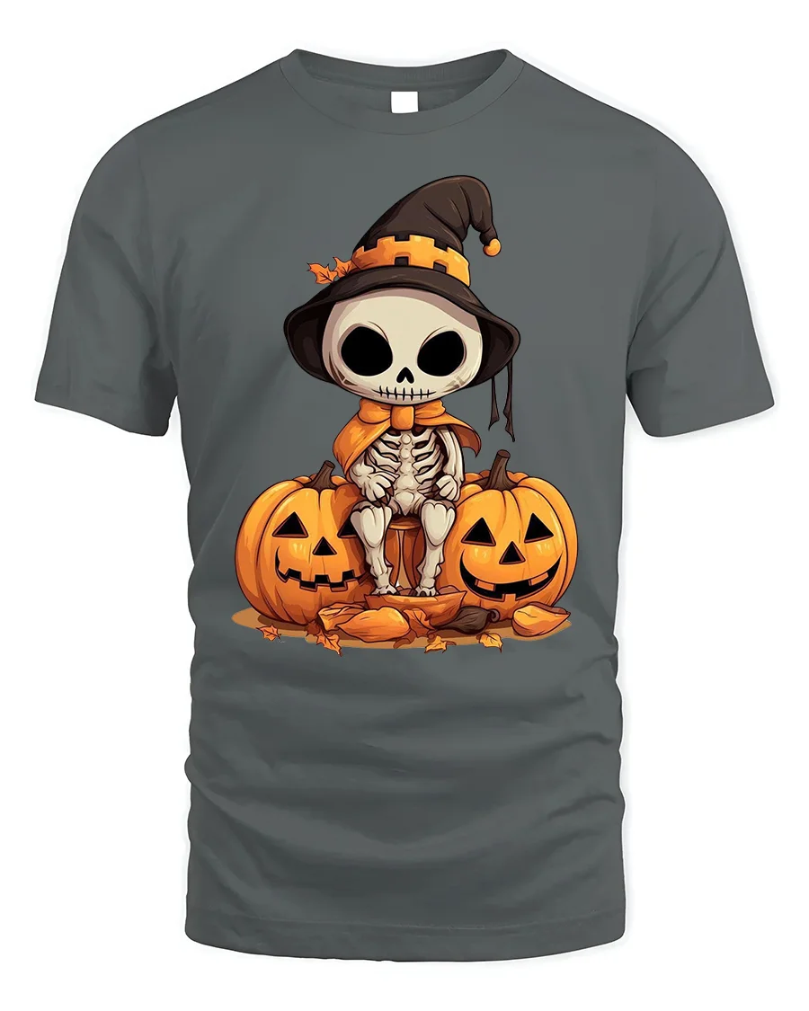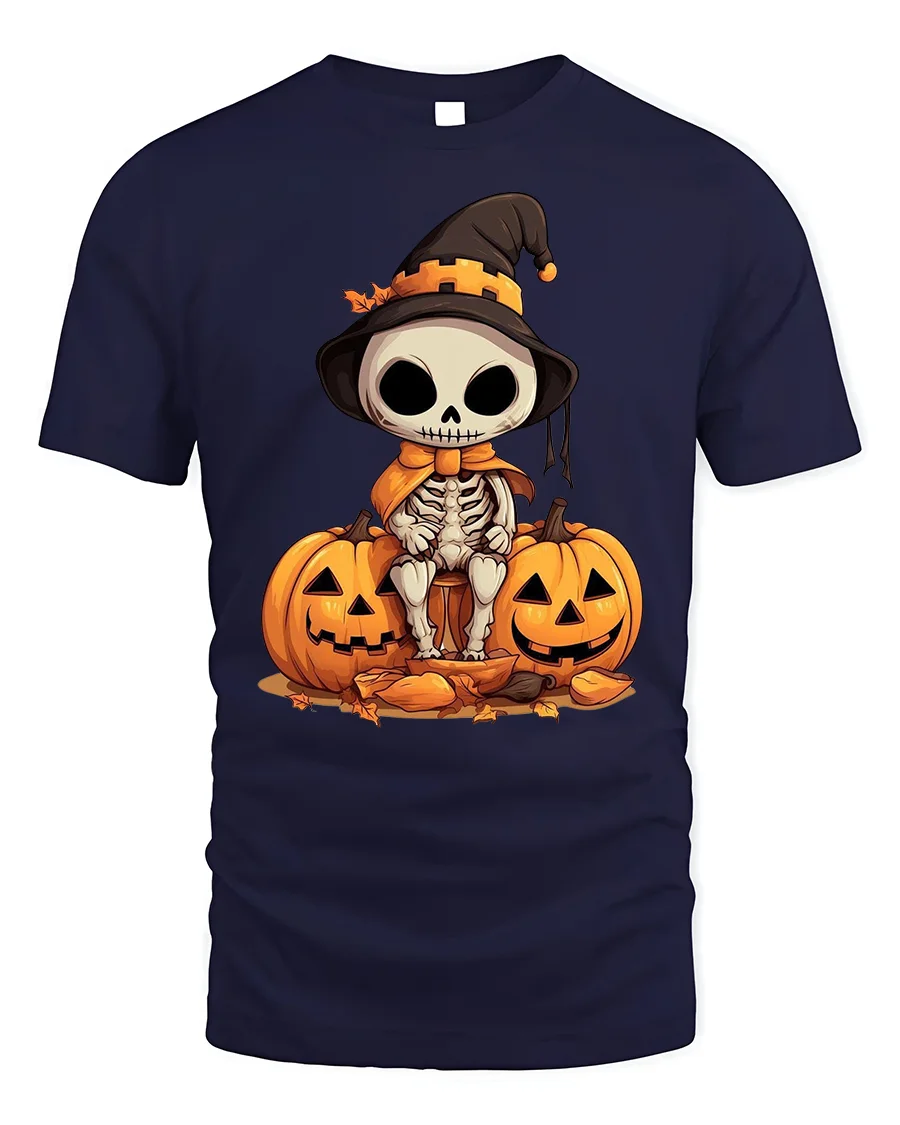 The Halloween Cute Skeleton T-Shirt with Pumpkin Duo also makes a fantastic gift for kids, teens, or adults who love Halloween apparel with a fun twist. Pair it with jeans, layer it under a jacket, or wear it on its own for a casual but festive Halloween style. Add this charming skeleton and pumpkin tee to your collection and make this October even more memorable.