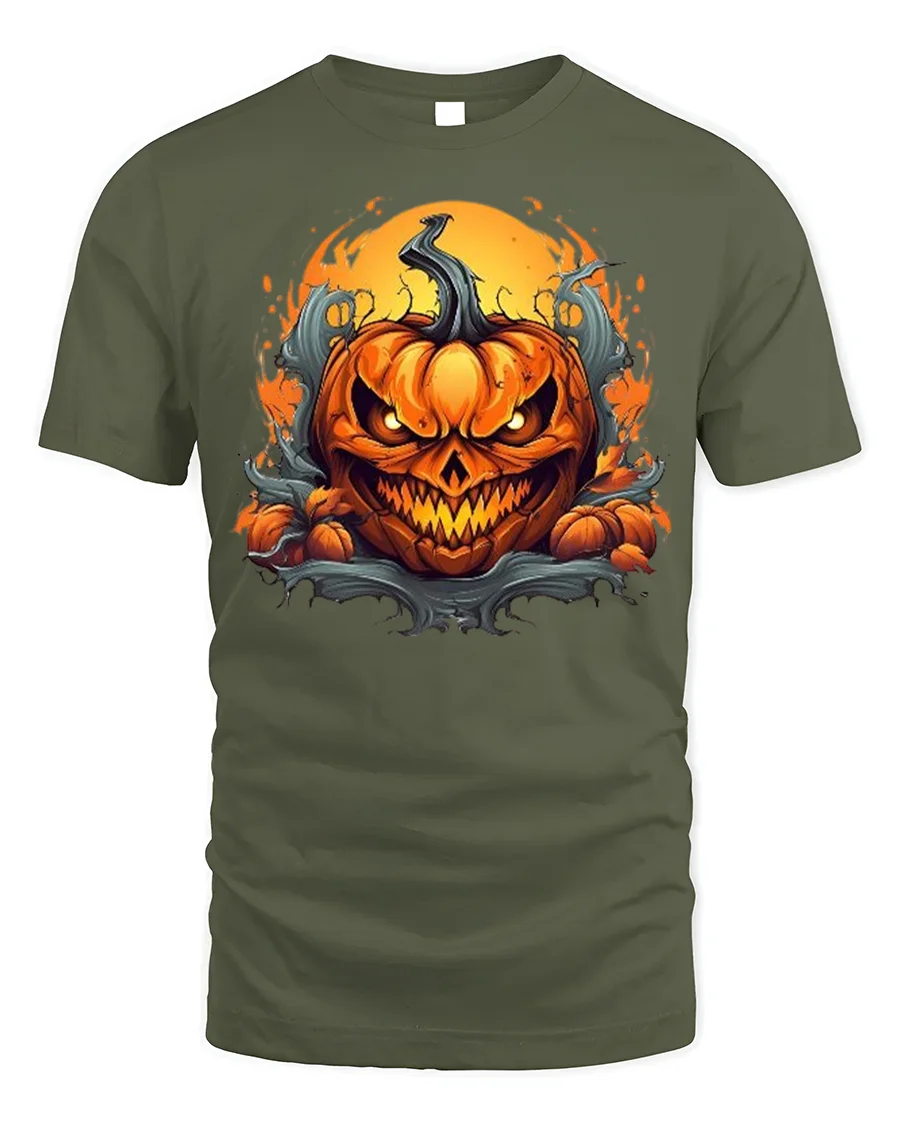 The Halloween Fiery Evil Pumpkin Face T-Shirt is a bold and fearsome design perfect for fans of the creepy side of Halloween. This graphic features a terrifying jack-o’-lantern with glowing, sinister eyes and a menacing grin, surrounded by flames and eerie vines. Its fiery glow makes this pumpkin design a standout for horror lovers and Halloween enthusiasts alike.