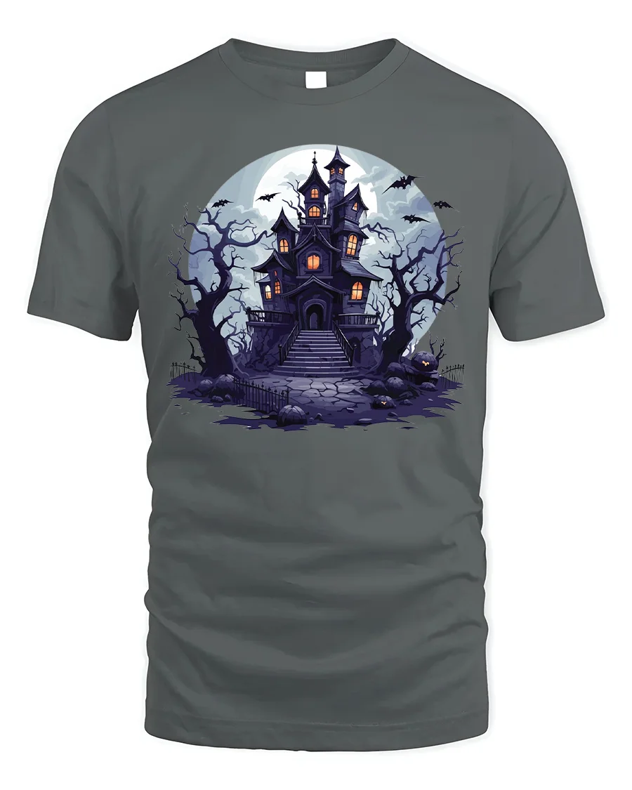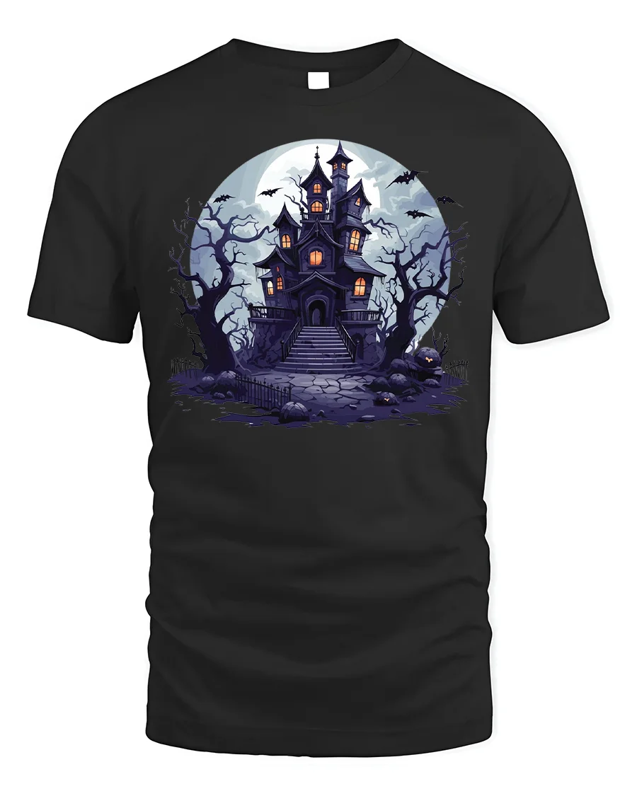 Made from soft, breathable fabric, this Halloween t-shirt delivers lasting comfort while showcasing a bold, detailed design that stands out in the night. Whether you’re attending a Halloween party, exploring haunted houses, trick-or-treating, or just showing your spooky spirit, this tee is the perfect addition to your October wardrobe. The eerie haunted house graphic makes it a striking choice for fans of horror and gothic style alike.