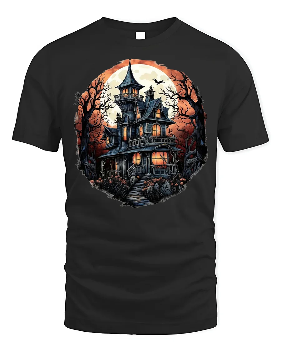 Crafted from soft, breathable fabric, this Halloween t-shirt offers comfort along with standout spooky style. The bold haunted house artwork glows against the dark background, making it perfect for trick-or-treating, haunted house visits, parties, or casual wear throughout the Halloween season. Its detailed design turns heads and creates an atmosphere of mystery and thrill wherever you go.