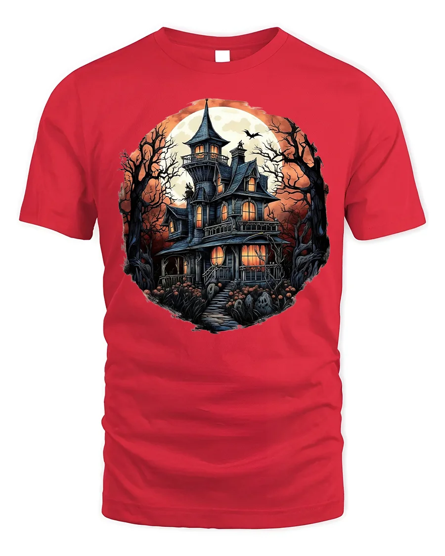 Halloween Haunted Mansion T-Shirt Spooky Moon Night - red t-shirt on white background