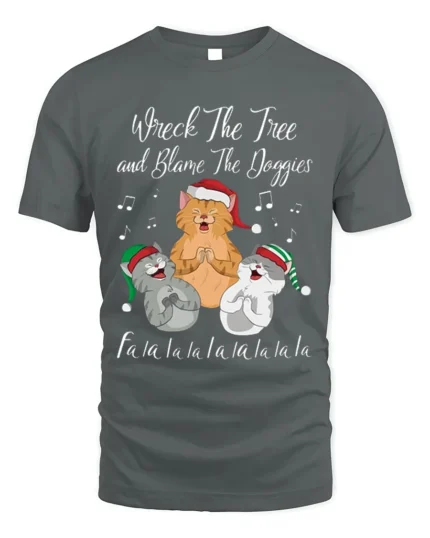 Funny Singing Cats Christmas T-Shirt Wreck The Tree Design