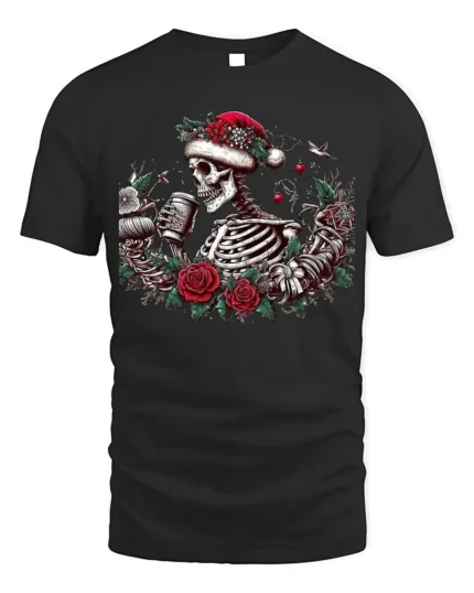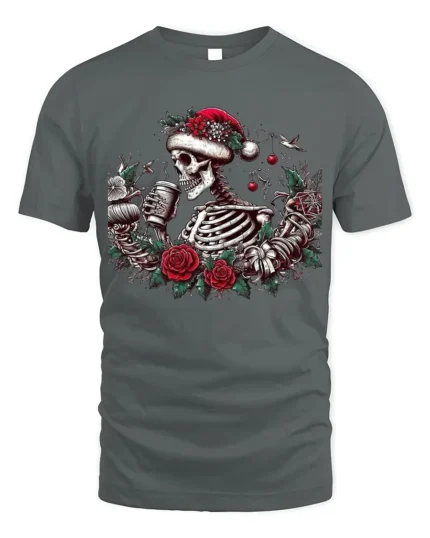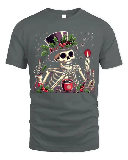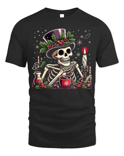 Skeleton Christmas Coffee Candle Graphic T-Shirt