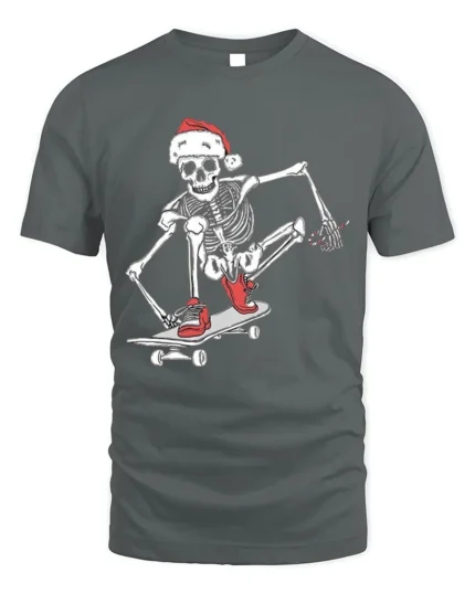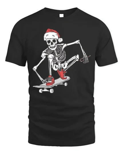 Skateboard Skeleton Santa Christmas T-shirt – Skateboarding Holiday