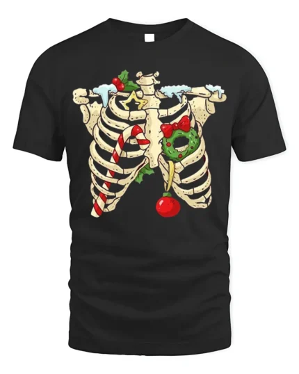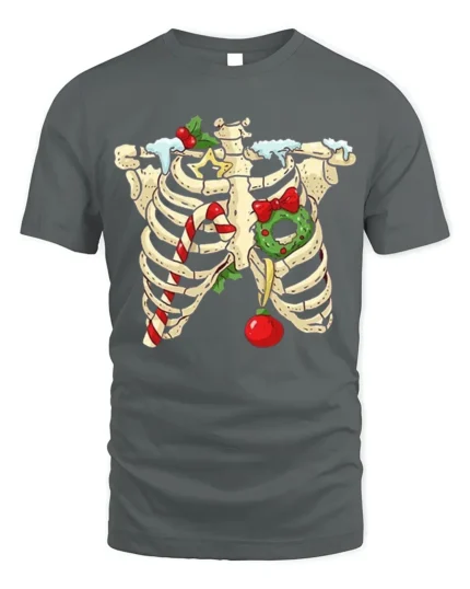 Skeleton Christmas Candy Cane Wreath Funny Holiday Tshirt