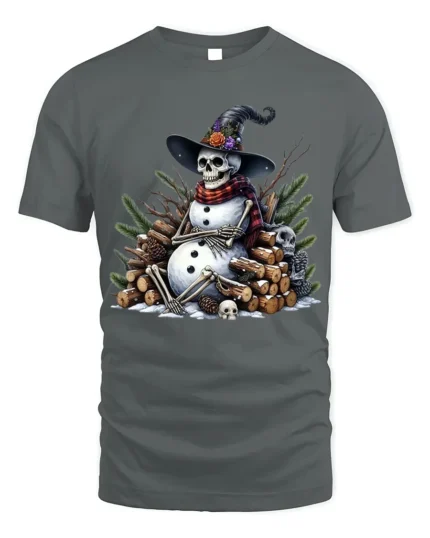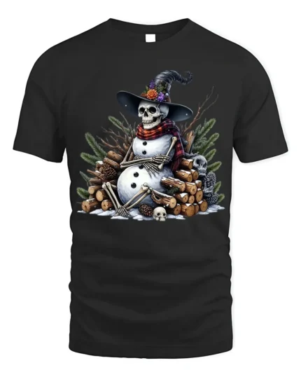 Skeleton Snowman Witch Hat Spooky Winter Holiday T-Shirt