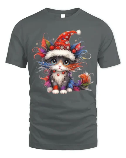Colorful Christmas Cat Art T-Shirt for Holiday Lovers