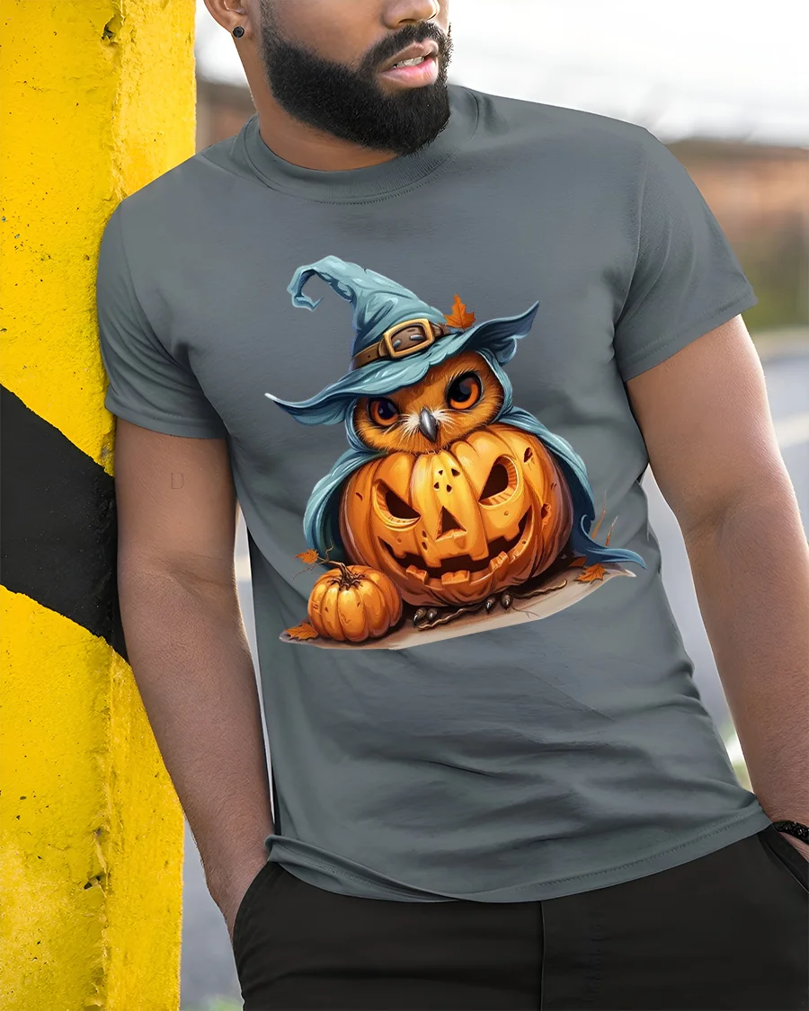 Ideal for men who love gothic, spooky, or animal-inspired Halloween fashion, this tshirt pairs easily with jeans, jackets, or layered outfits. It also makes a thoughtful gift for anyone who enjoys owls, pumpkins, or Halloween-themed apparel. Step into the season of scares with this Halloween Owl Pumpkin Witch Hat Tshirt Style, and show off your spooky side in comfort and style.