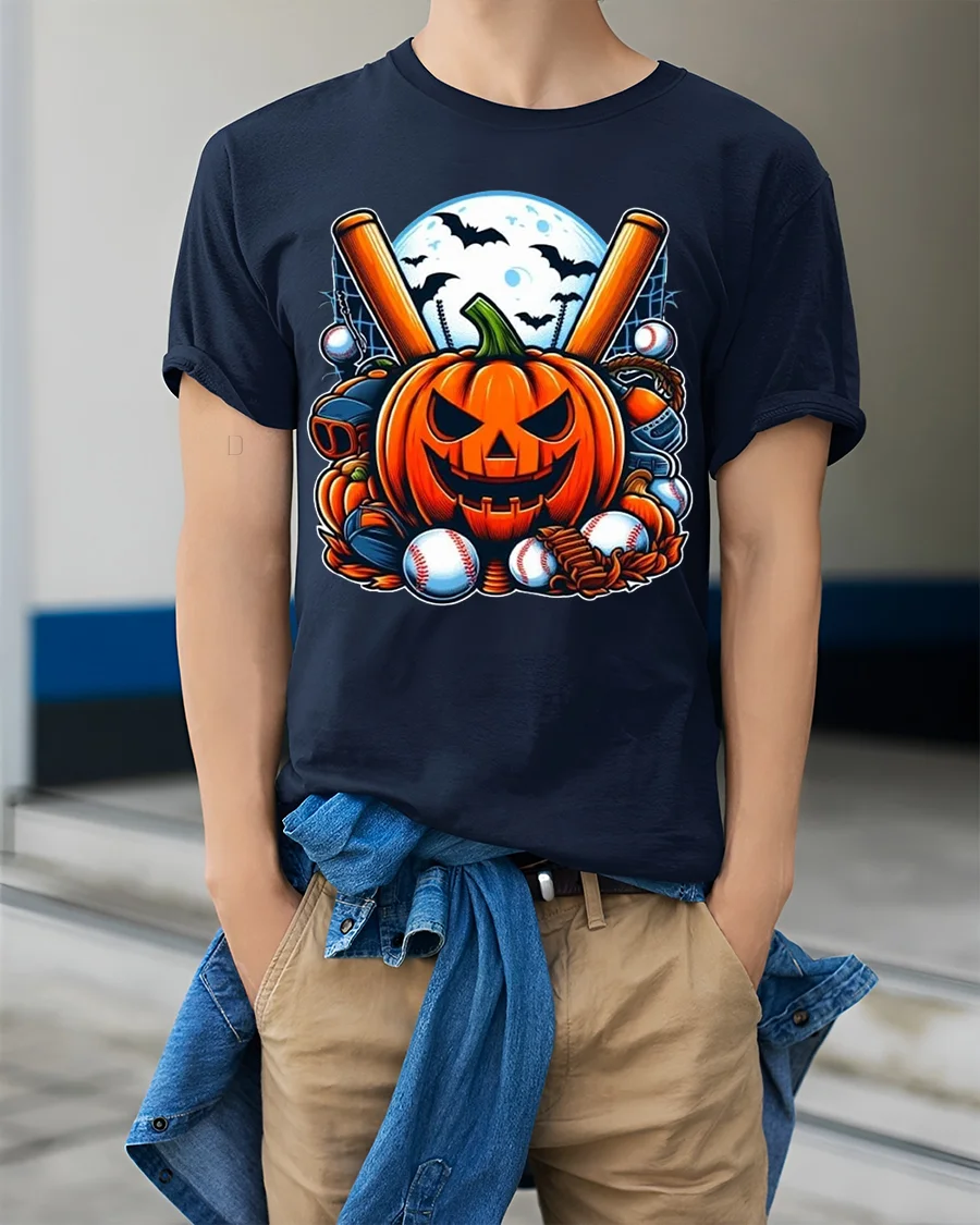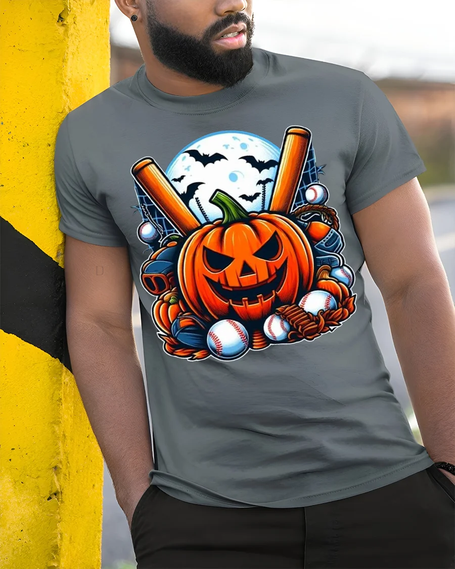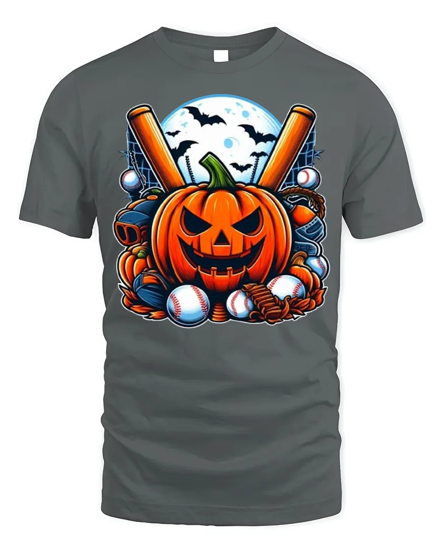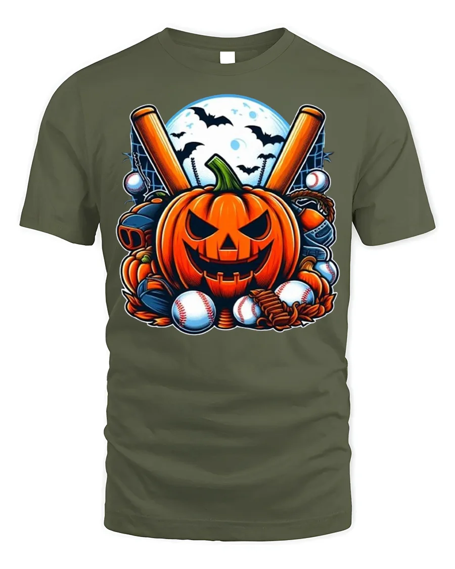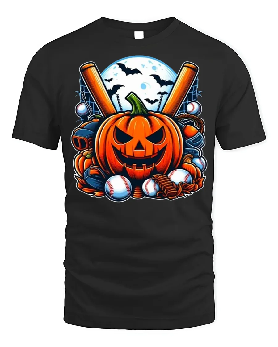 Step up to the plate this October with a tee that combines baseball and Halloween in one striking design.