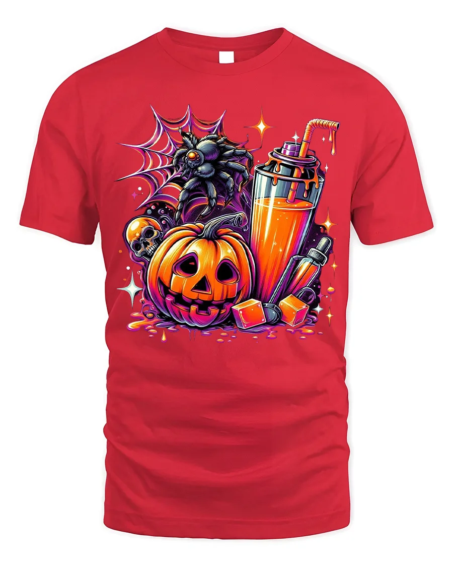 Halloween Pumpkin Drink Graphic T-Shirt is the ultimate choice for anyone who loves spooky season with a playful twist.
