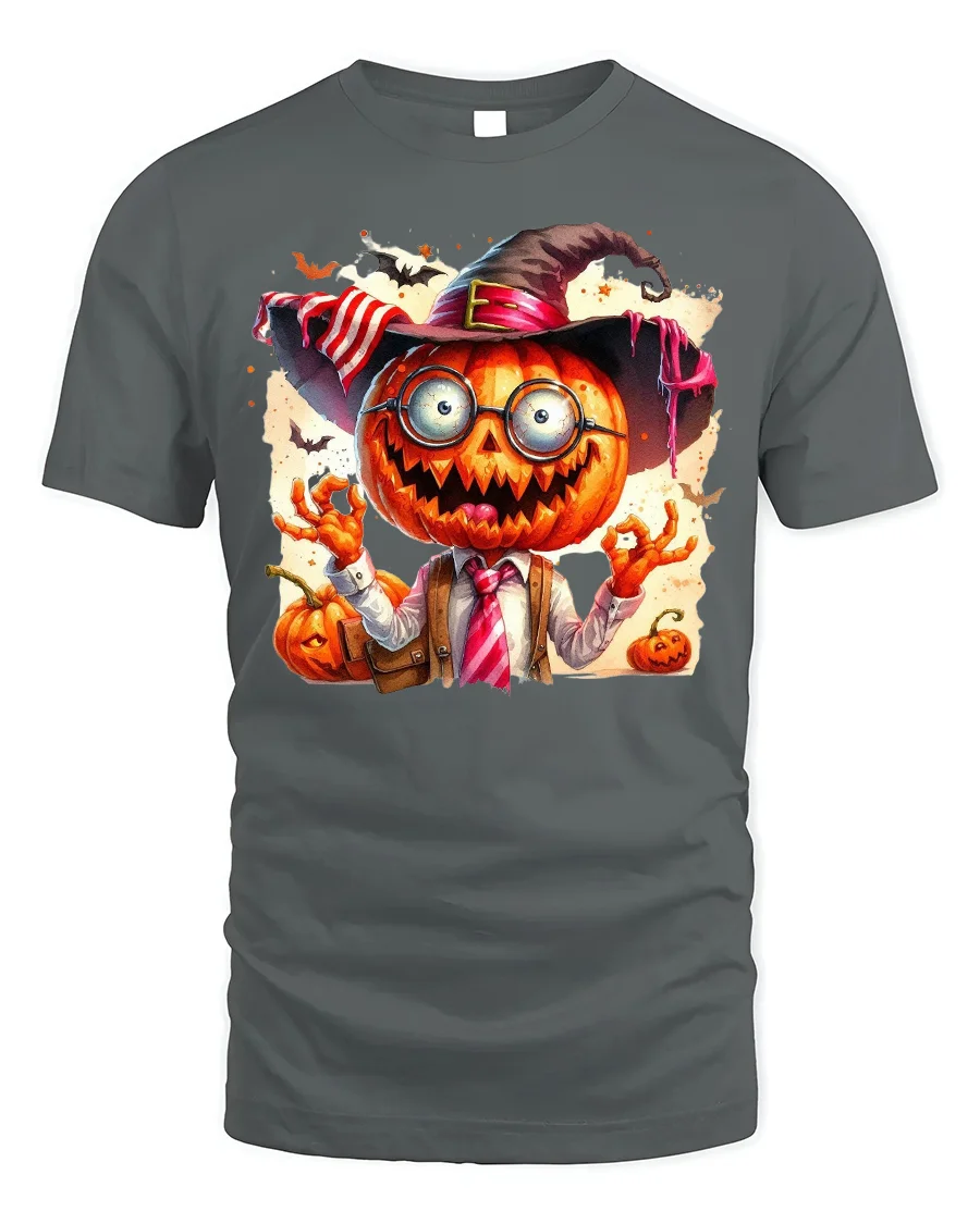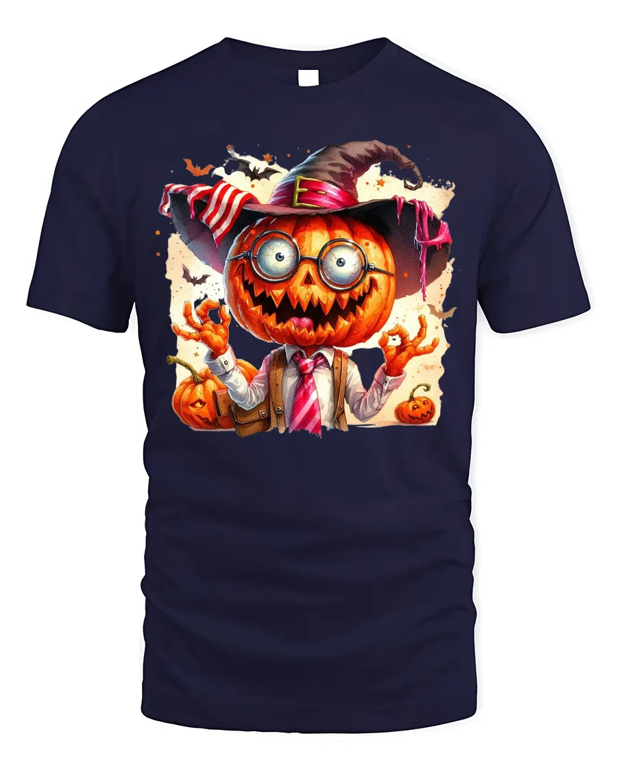 Show off your spooky sense of humor this season with the Halloween Pumpkin Head Crazy Teacher T-Shirt. This bold design features a wild pumpkin-headed character dressed in a shirt and tie with a satchel, topped with a quirky witch hat and oversized glasses. The combination of creepy jack-o’-lantern grin and eccentric teacher vibe creates a fun and unforgettable Halloween look.