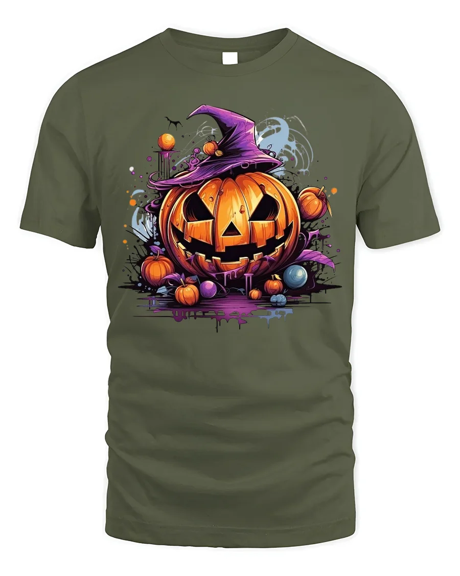 Add a bold spooky vibe to your seasonal wardrobe with the Halloween Pumpkin Witch Hat Spooky T-Shirt. Featuring a sinister jack-o’-lantern topped with a purple witch hat, surrounded by glowing pumpkins, eerie colors, and dripping details, this graphic shirt perfectly captures the spirit of Halloween. With its mix of creepy and colorful design, it makes an unforgettable addition to your fall collection.