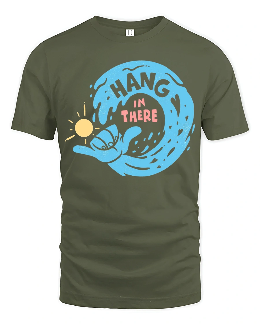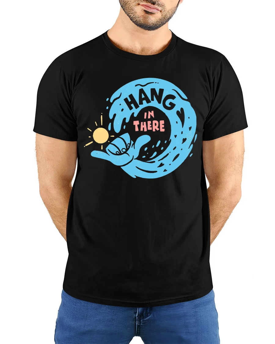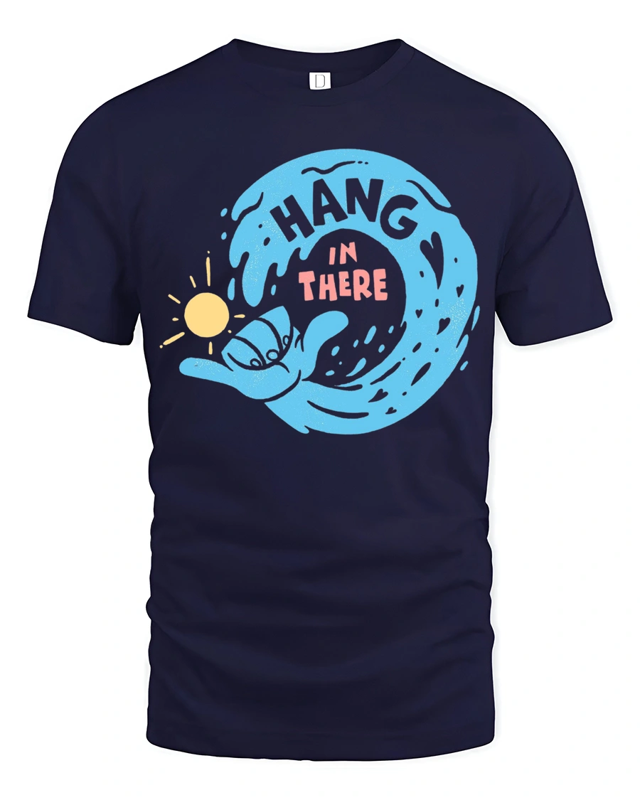 Hang In There Motivational Wave Graphic Tee Positive Style delivers uplifting encouragement through a creative ocean inspired illustration.