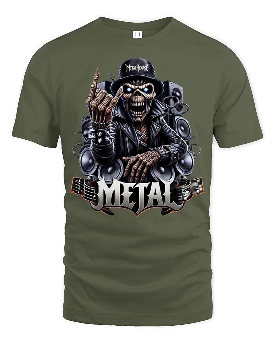 Heavy Metal Skeleton Rocker Graphic T Shirt delivers a bold and electrifying design inspired by the rebellious spirit of rock and heavy metal culture.