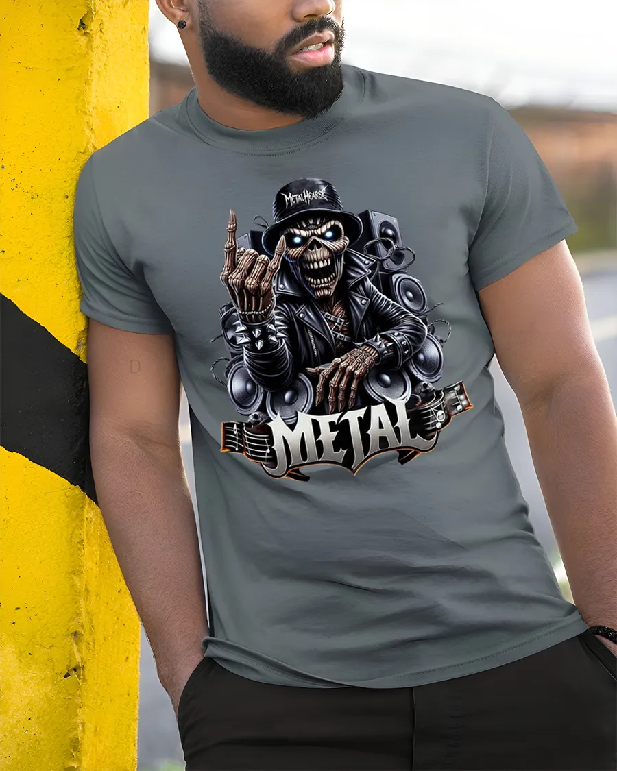 Heavy Metal Skeleton Rocker Graphic T Shirt celebrates the fearless energy and passion that define the metal music scene.