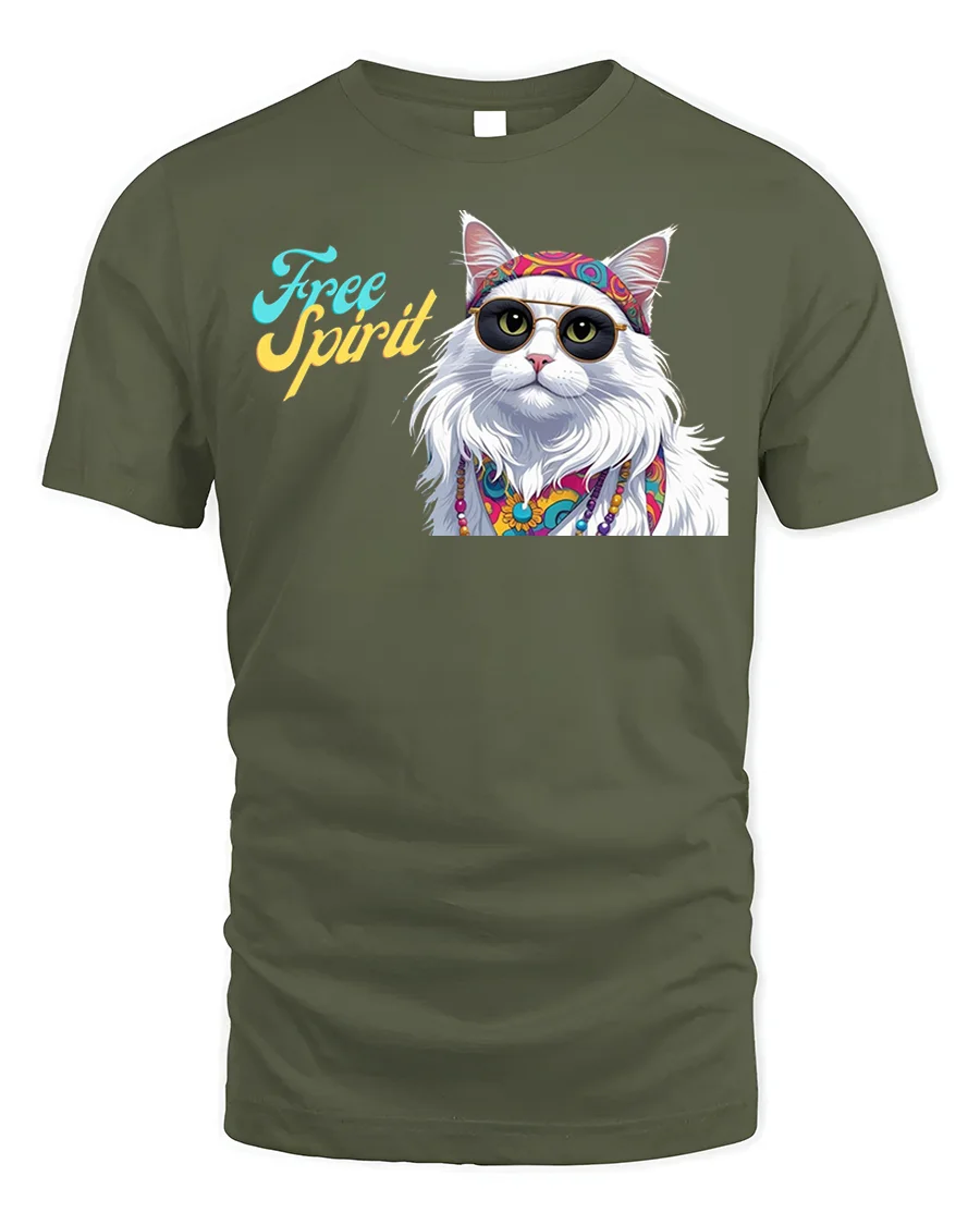 Show off your groovy side with the Hippie Cat Free Spirit Graphic T-Shirt, a fun and stylish design perfect for anyone who loves cats and retro vibes. Featuring a cool white cat wearing sunglasses, a colorful headband, and boho accessories, this t-shirt captures the true meaning of free spirit living.