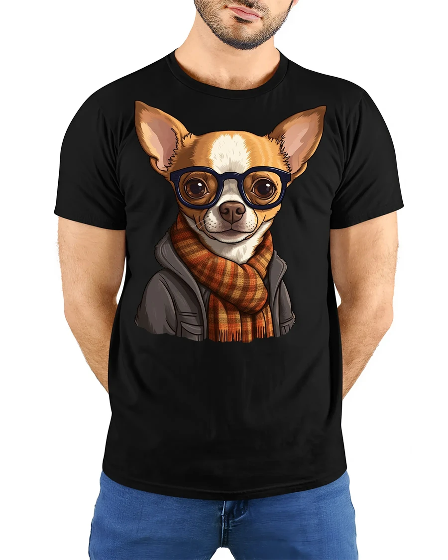 Home Hobbies Hipster Chihuahua Dog With Glasses Scarf Graphic T Shirt Cute Pet Tee