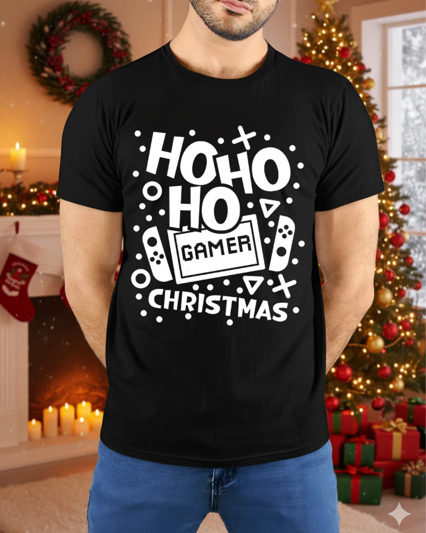 Level up your holiday spirit with our Ho Ho Ho Gamer Christmas Video Game Holiday T-Shirt. Designed for gaming lovers who live for epic wins and festive fun, this shirt combines holiday cheer with your favorite pastime. Featuring bold “Ho Ho Ho Gamer” text and game controller graphics, it’s the ultimate tee for gamers celebrating Christmas in style.