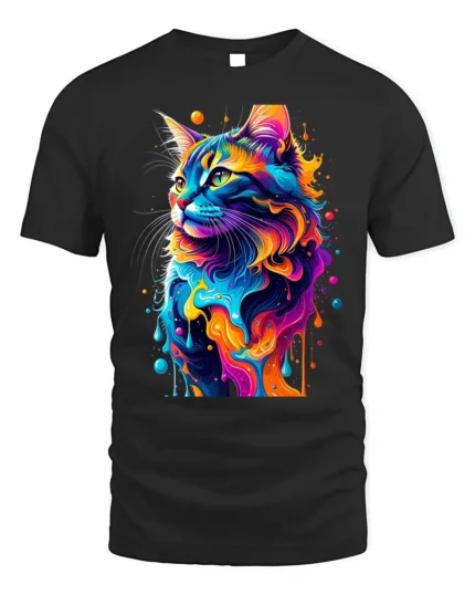 Color Splash Flower T-Shirt with Artistic Design - black t-shirt on white background
