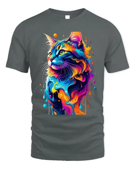 Color Splash Flower T-Shirt with Artistic Design - gray t-shirt on white background