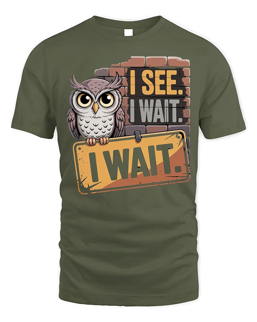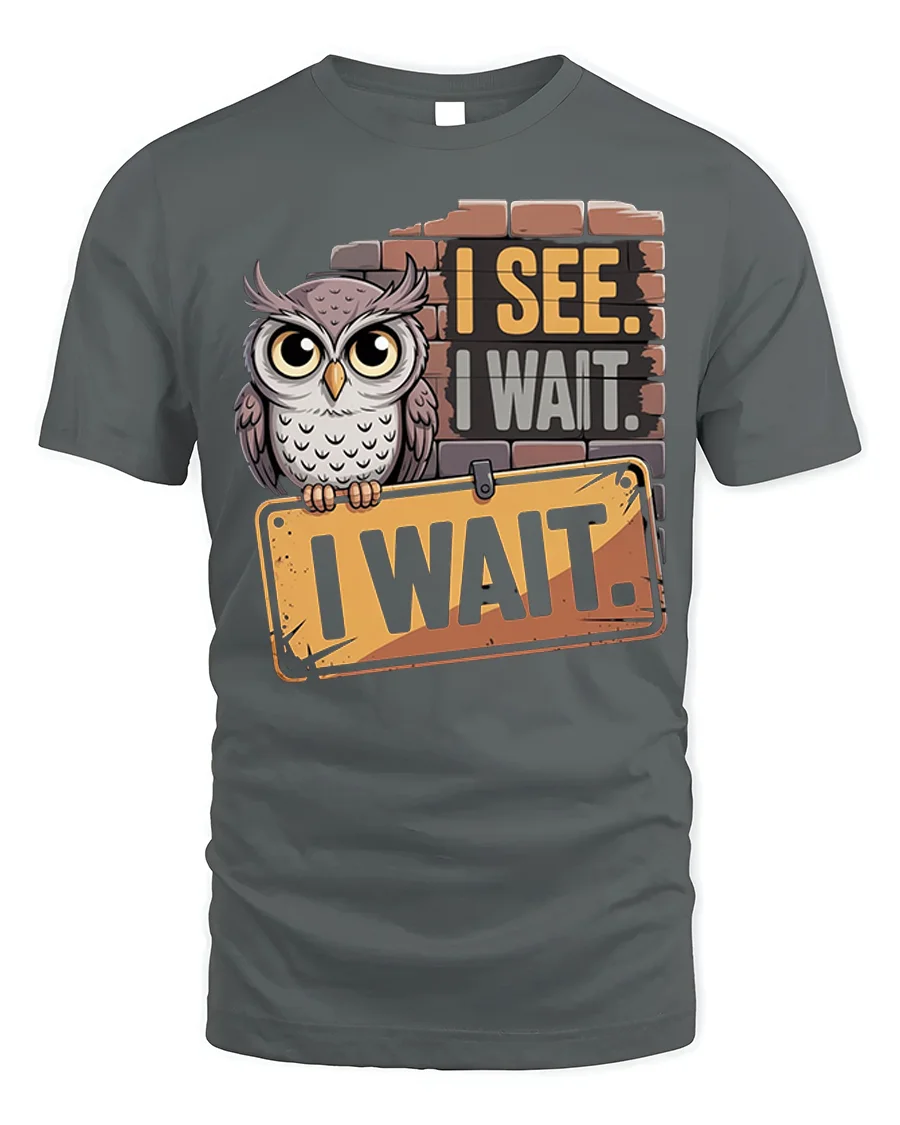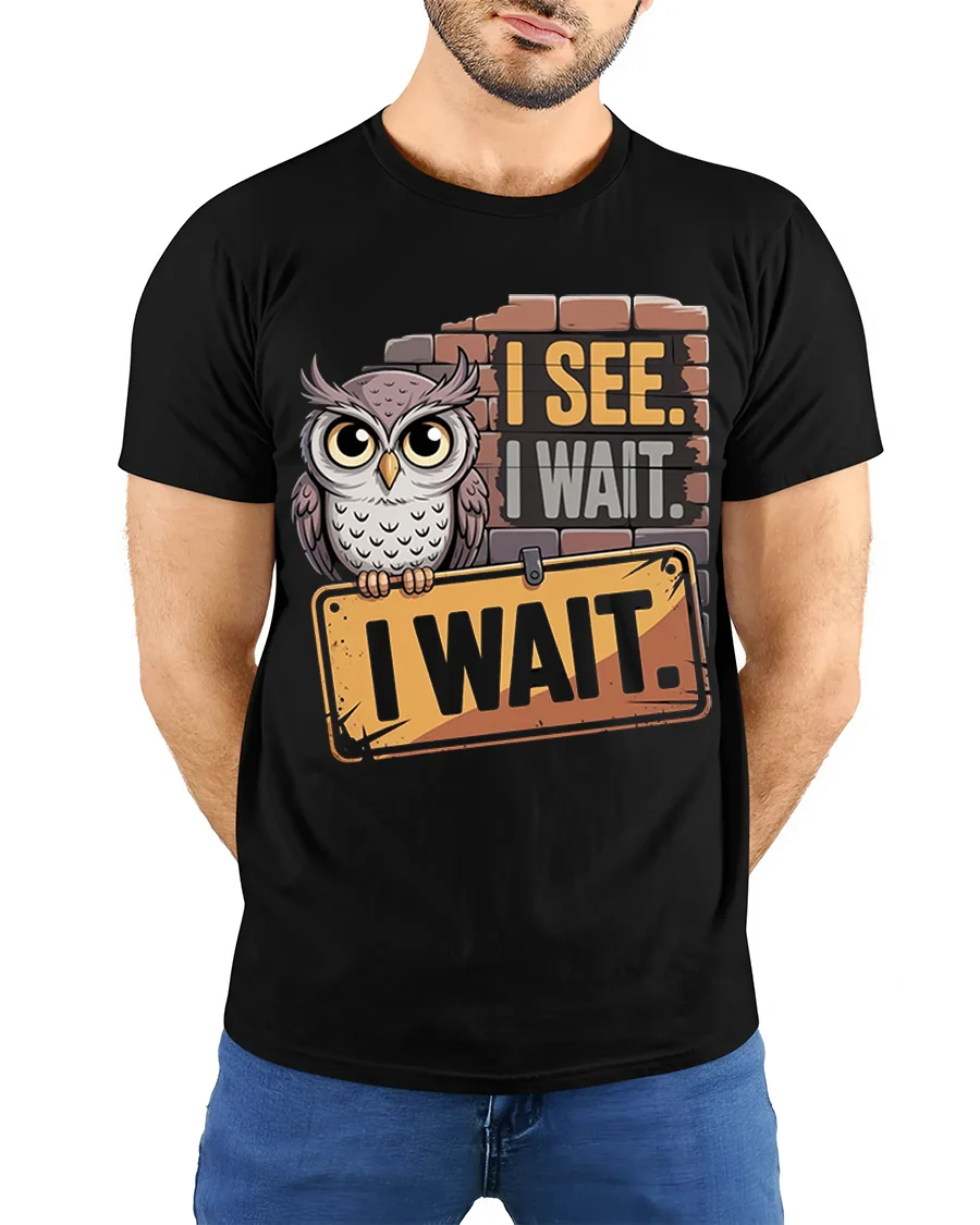 The I See I Wait Owl Graphic Funny Quote T-Shirt also makes a thoughtful gift for anyone who loves owls, appreciates humor, or simply enjoys creative graphic tees. Stylish and versatile, this shirt is a perfect mix of comfort and personality, letting you wear your patience and wit with pride.