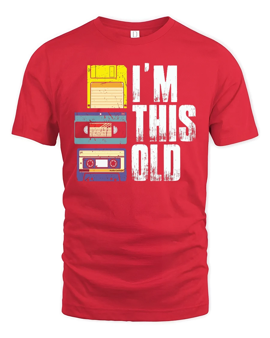 Im This Old Retro Cassette Floppy Disk Graphic Tee Tshirt - red t-shirt on white background