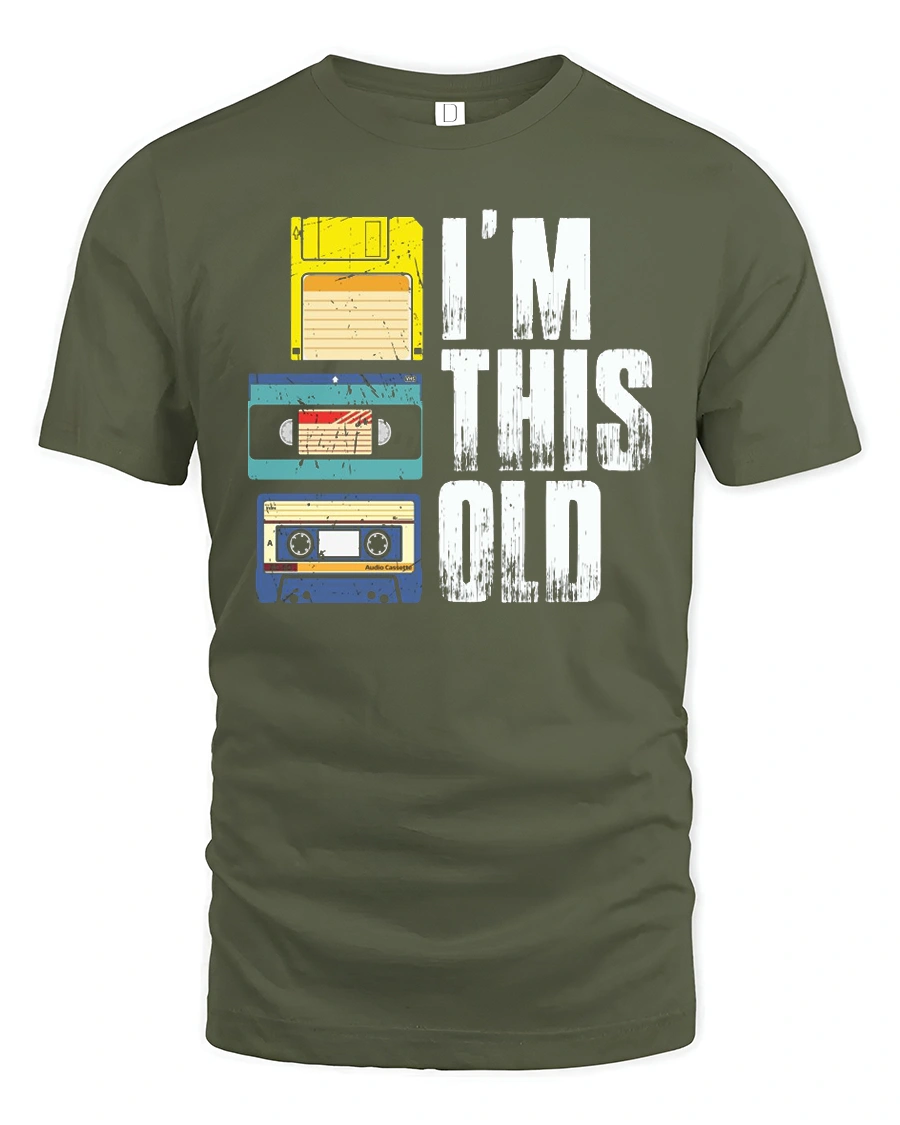 Im This Old Retro Cassette Floppy Disk Graphic Tee Tshirt - military green t-shirt on white background