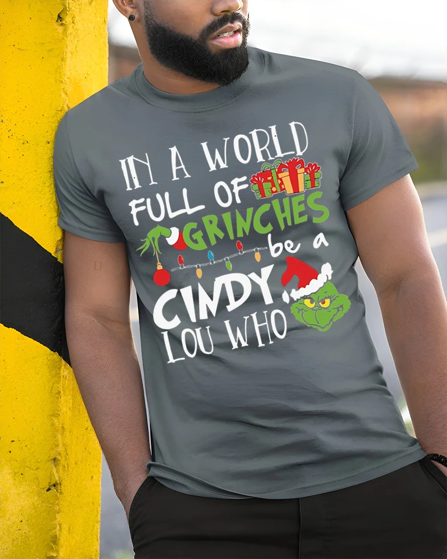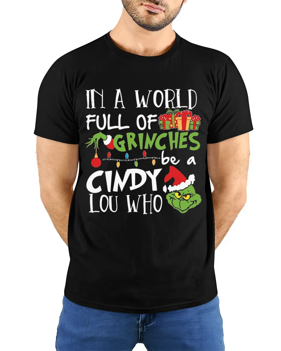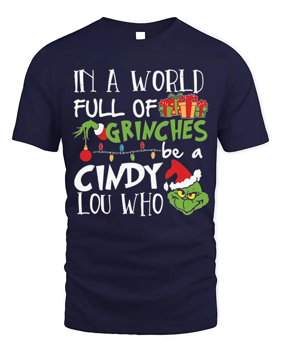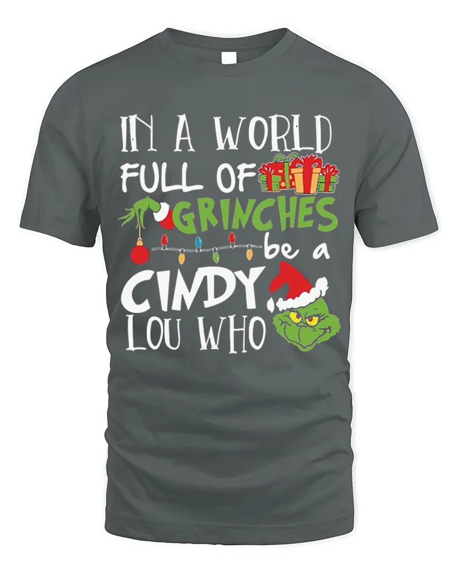 Spread positive holiday vibes with our In A World Full Of Grinches Be A Cindy Lou Who Christmas T-Shirt.
