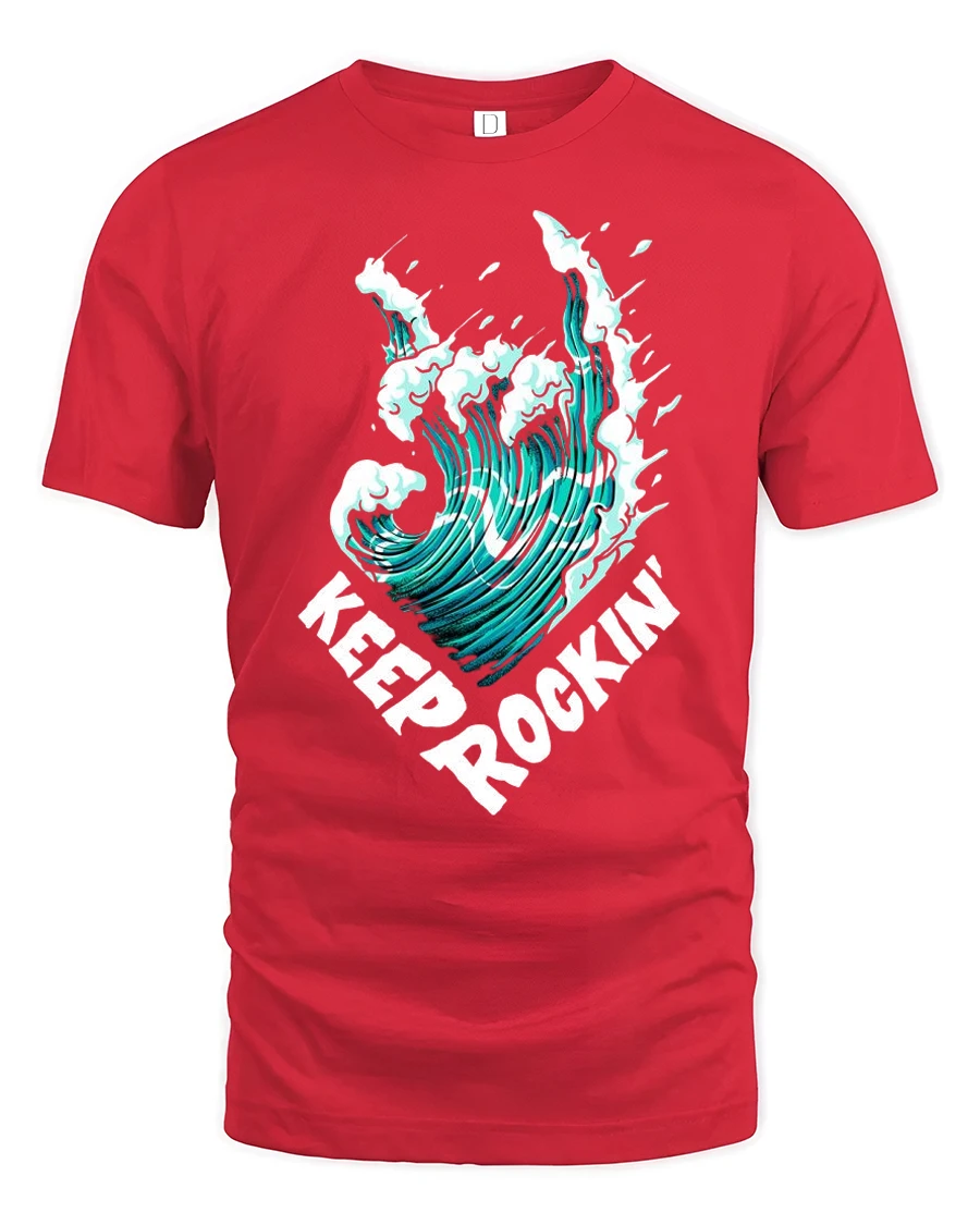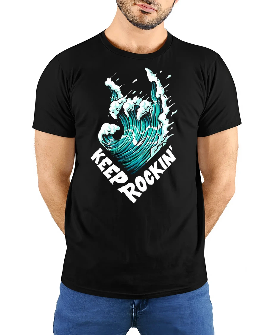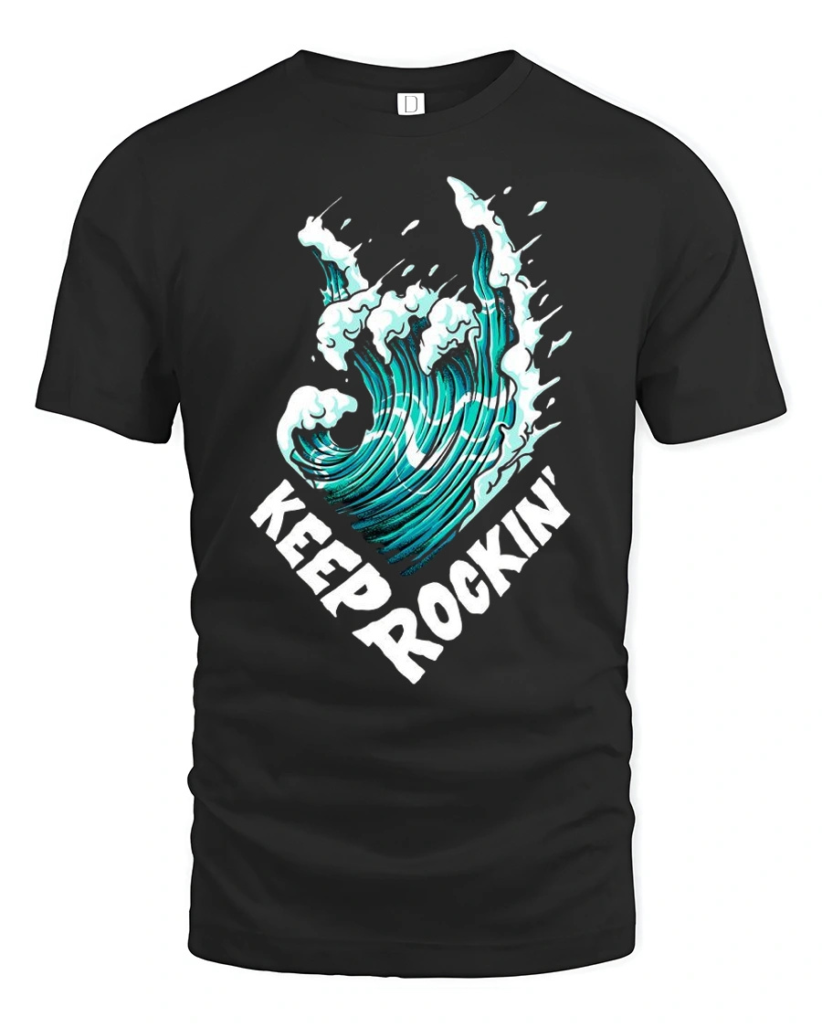 Keep Rocking Wave Graphic Tee Cool Ocean Music Tshirt combines the energy of music culture with the powerful beauty of ocean waves in one eye catching design. The dynamic wave illustration paired with an uplifting phrase creates a strong visual that symbolizes movement, passion, and positive attitude. This creative artwork expresses individuality while bringing a vibrant and inspiring vibe to everyday casual fashion.