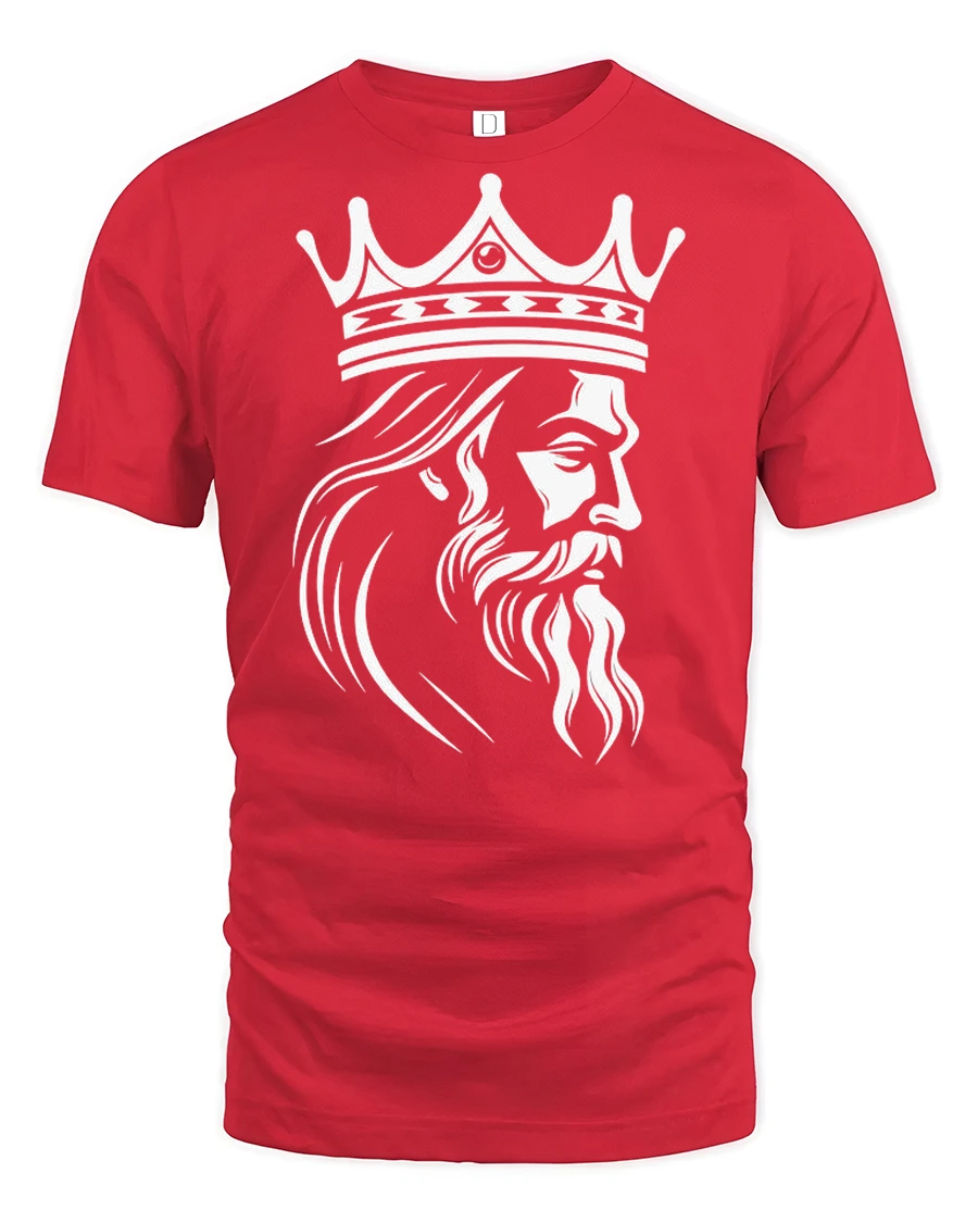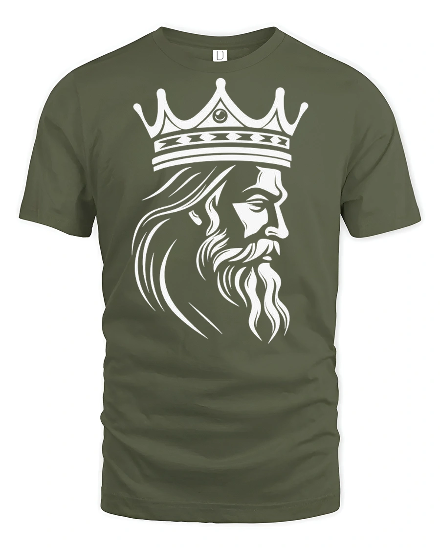 The artwork features a detailed crowned king with a strong beard, creating a clean yet powerful visual statement.