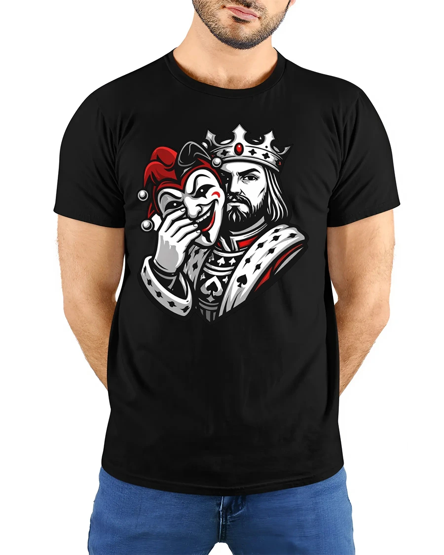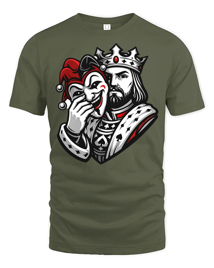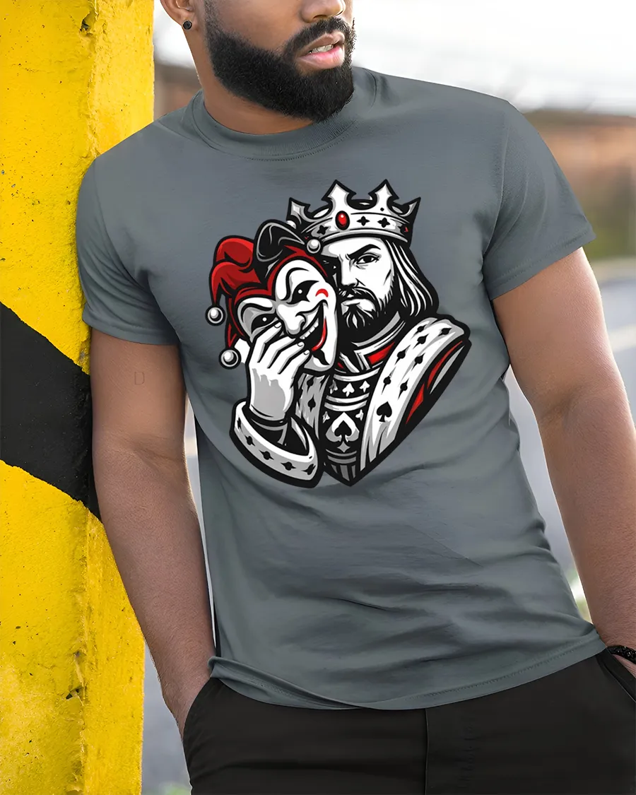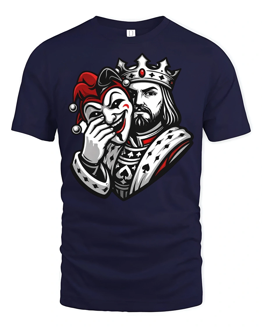 This king joker mask t shirt explores the theme of dual personalities through a visually powerful royal character.