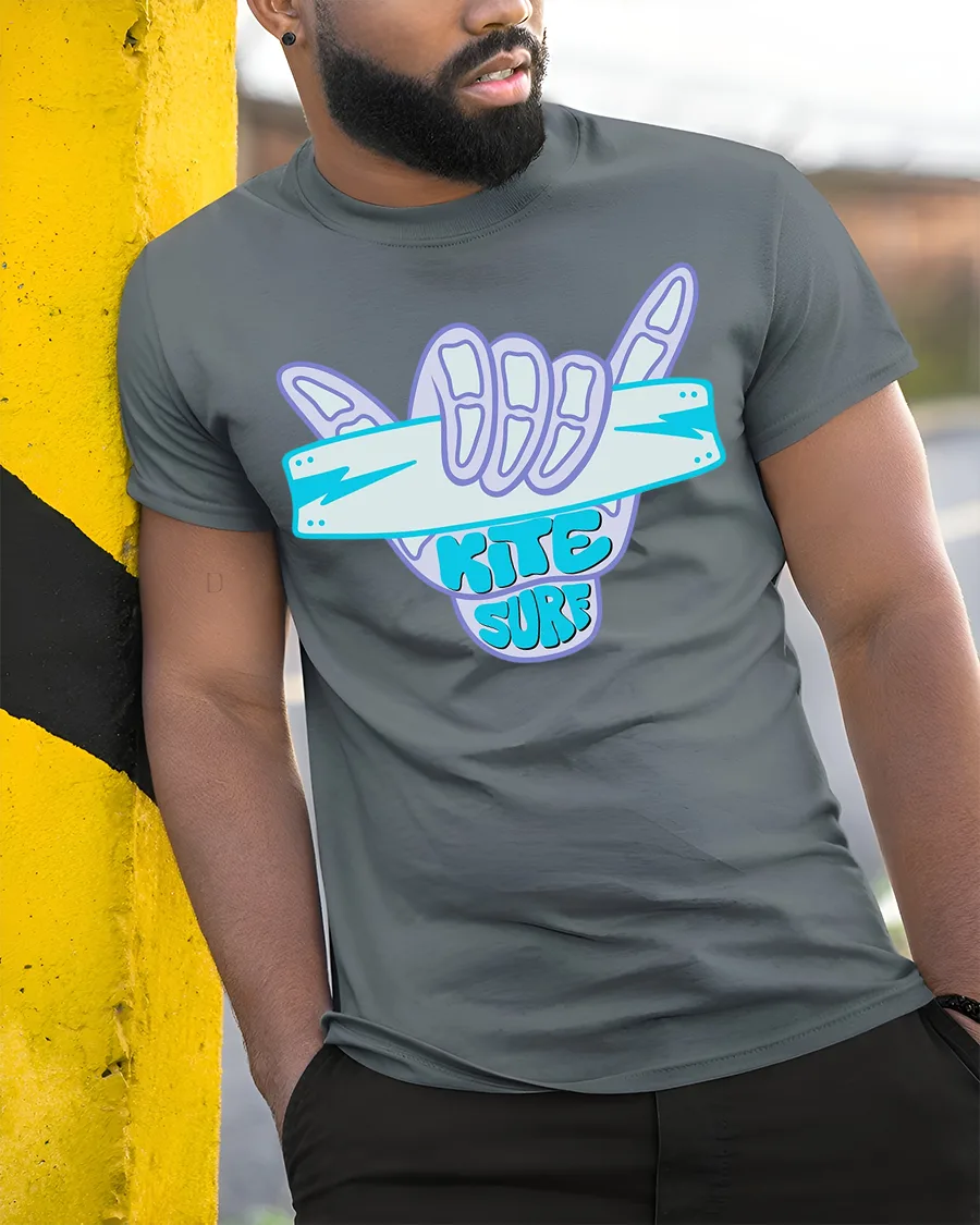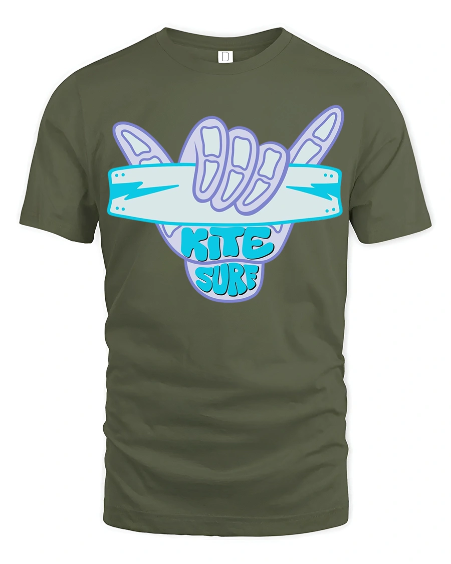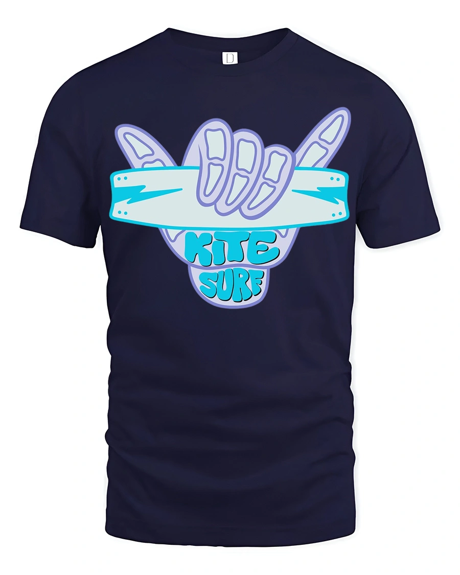 Kite Surf Shaka Hand Sign Ocean Adventure Graphic Tee captures the excitement of wind powered waves and the energetic spirit of ocean sports culture.