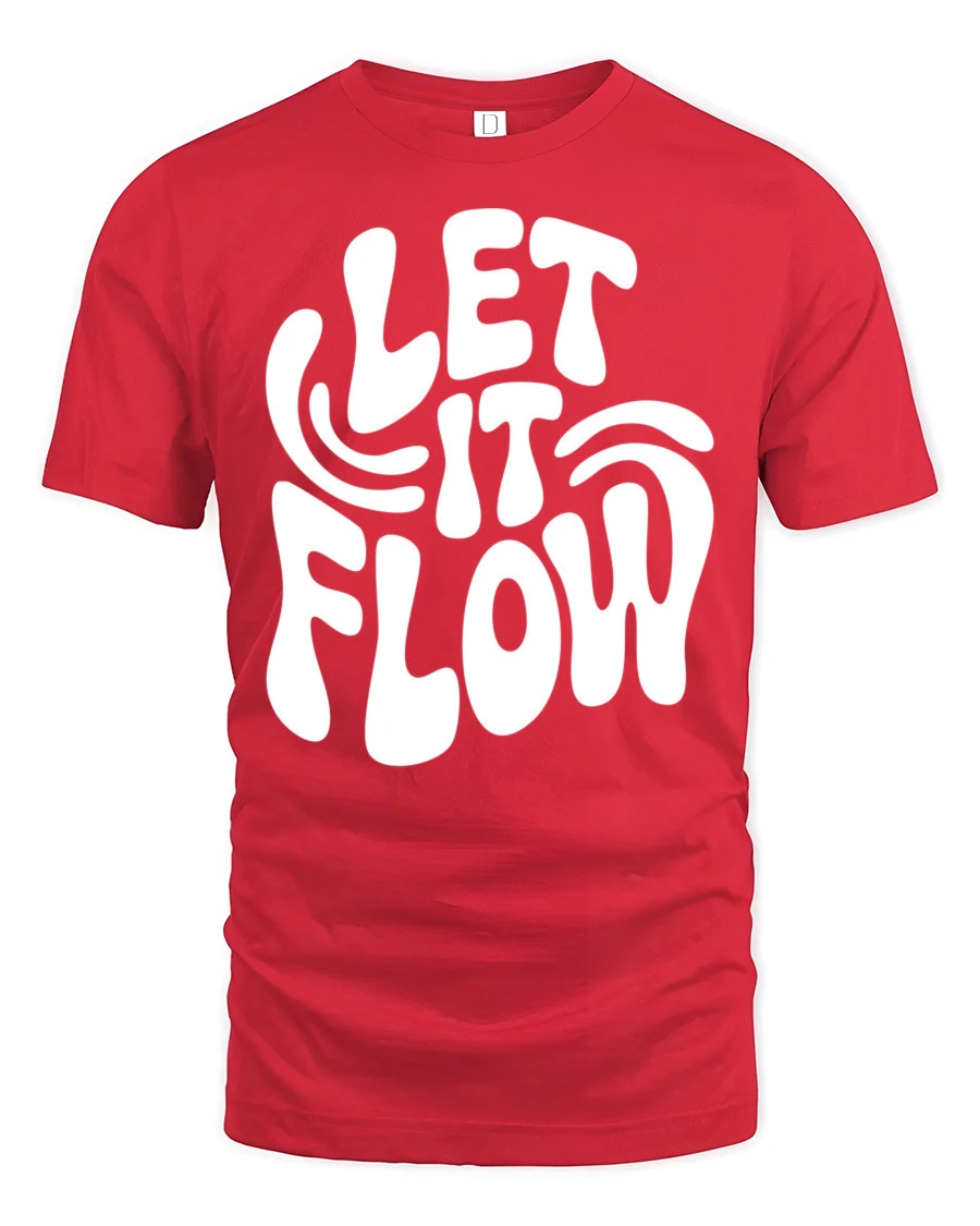 Let It Flow Positive Vibes Retro Typography Graphic T Shirt - red t-shirt on white background