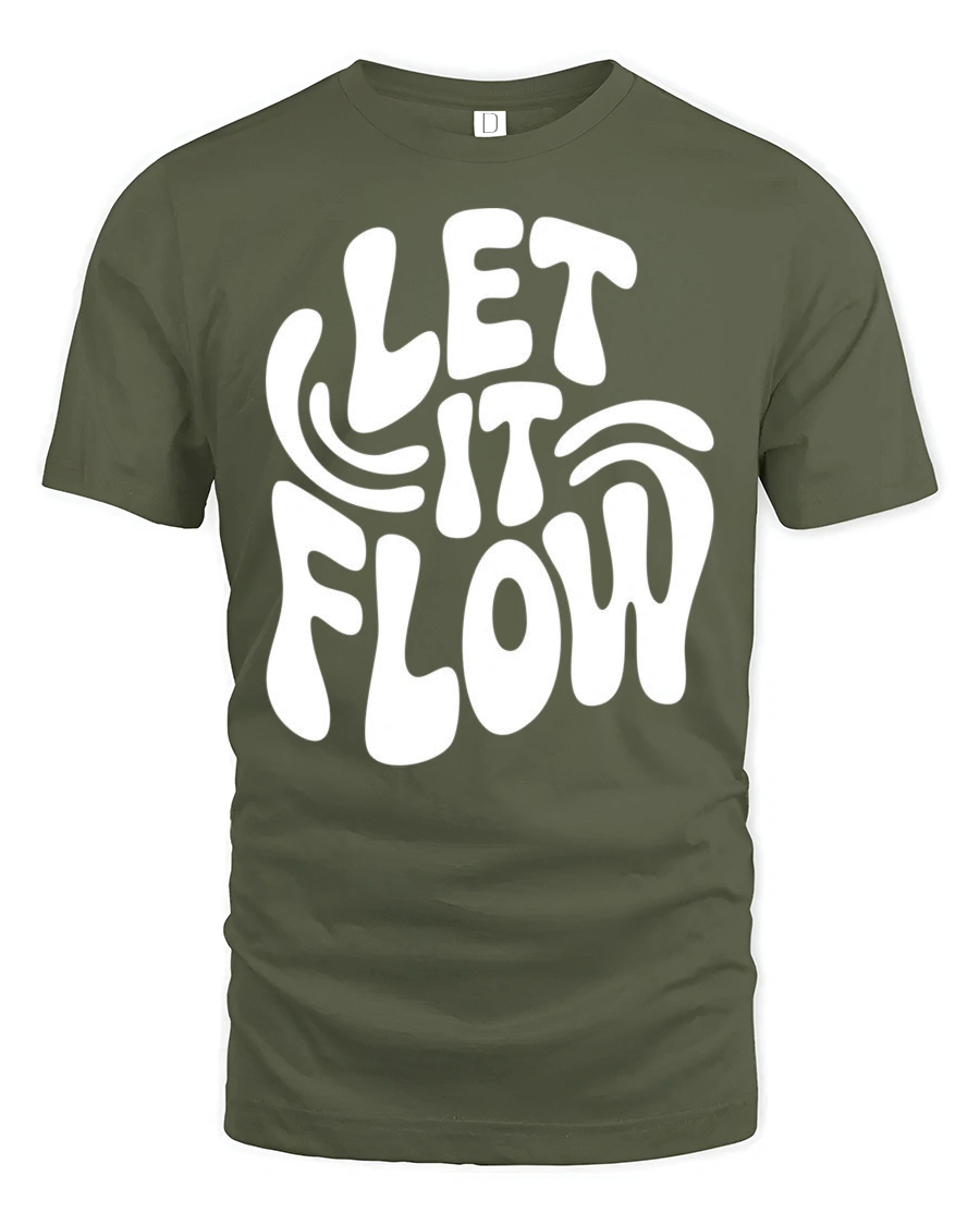 Let It Flow Positive Vibes Retro Typography Graphic T Shirt - military green t-shirt on white background